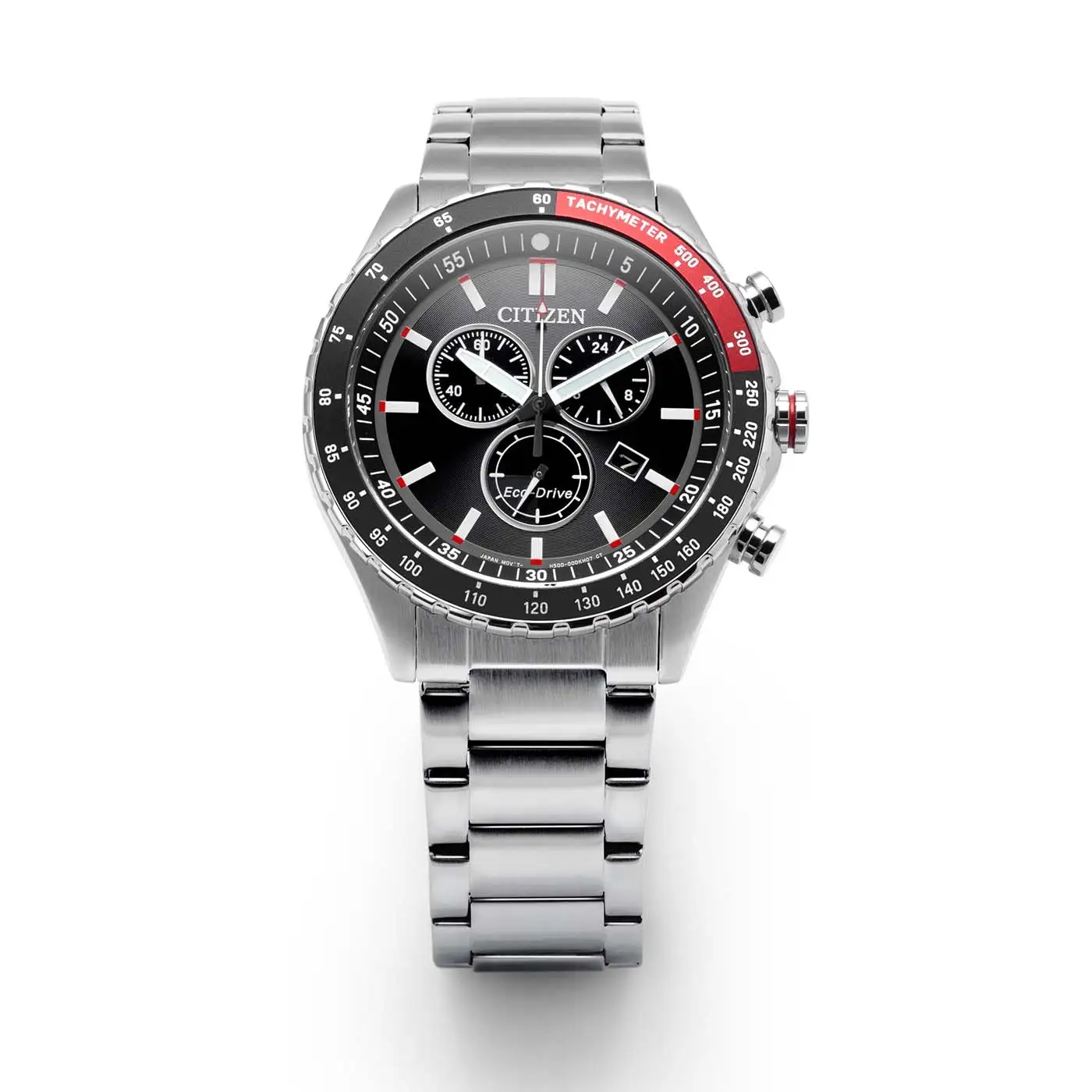 Zegarek korzysta z autorskiej technologii Citizen Eco-Drive, która przetwarza światło w energię napędową. Dzięki temu mechanizm pracuje precyzyjnie bez konieczności tradycyjnej wymiany baterii. Na tarczy rozmieszczono trzy mniejsze wskaźniki obsługujące stoper mierzący czas do 60 minut, czas w formacie 24-godzinnym oraz mały sekundnik zegarka na godzinie 6. Dodatkowo na godzinie czwartej znajduje się okienko datownika, a szerokie wskazówki z powłoką luminescencyjną gwarantują czytelność po zmroku.