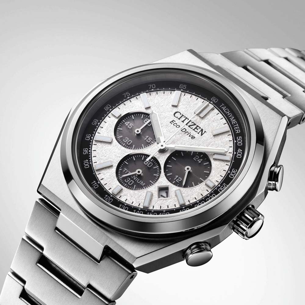 Japoński zegarek Citizen CA4610-85A zachwyca niejednolitym wzorem tarczy w kolorze srebrnym oraz unikalnym połączeniem Super Titanium™ i Eco-Drive. Czasomierz w innowacyjny sposób łączy w sobie styl i funkcjonalność. Koperta i bransoleta tego sportowego chronografu, wykonane są z supertytanu. Opatentowany przez japońską markę surowiec do produkcji zegarków od 1970 roku. Dzięki swoim doskonałym właściwościom zegarki wykonane z super tytanu są bardzo odporne i lekkie. Super Titanium™ używany przez Citizen powstaje przy użyciu surowca w postaci czystego tytanu i własnej, wewnętrznej technologii powlekania Duratect. Daje to pięciokrotnie większą wytrzymałość od stali nierdzewnej. Materiał ten ze względu na swoje wyjątkowe właściwości jest używany przez firmę Citizen w japońskim przemyśle lotniczym.