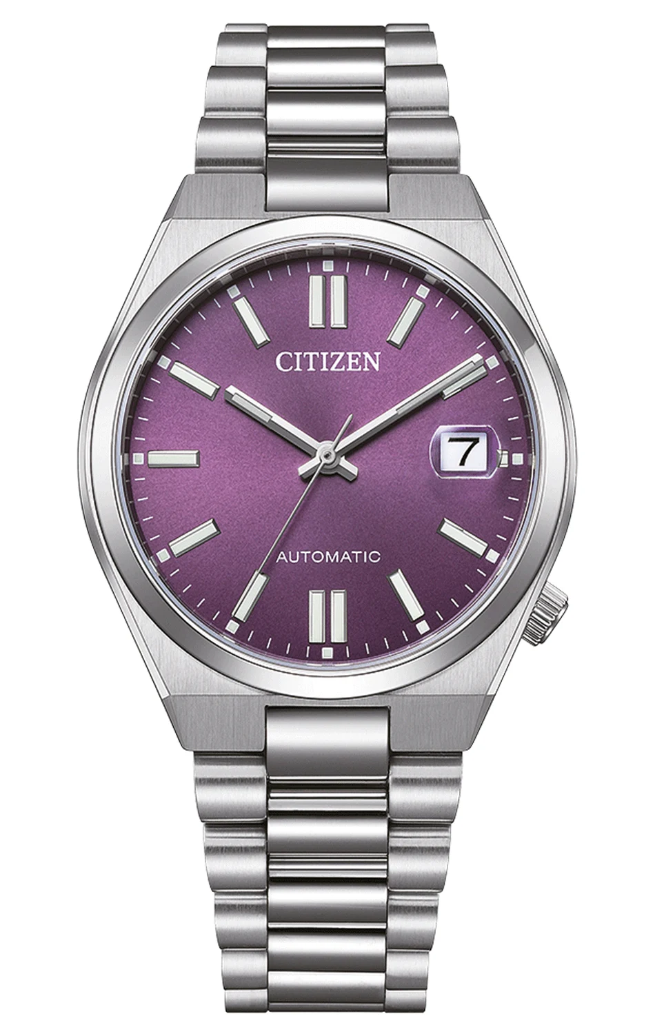 Citizen Tsuyosa NJ0200-50W automatyczny zegarek z fioletową tarczą, szafirowym szkłem i mechanizmem 8210 z rezerwą chodu 42 h.