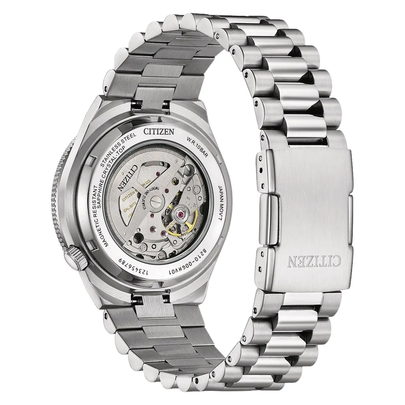 Zegarek osadzono na solidnej stalowej bransolecie o trójrzędowym splocie, która łączy matowe powierzchnie z polerowanymi detalami, zapewniając prestiżowy wygląd i wysoką trwałość. Wodoszczelność klasy 10 bar w połączeniu z zakręcanym przeszklonym deklem, przez który można podziwiać pracę mechanizmu, czyni ten model niezwykle uniwersalnym towarzyszem. Citizen NJ0230-59L to idealna propozycja dla osób, które kochają stylistykę Tsuyosa, ale szukają zegarka o większym rozmiarze i bardziej sportowym zacięciu.