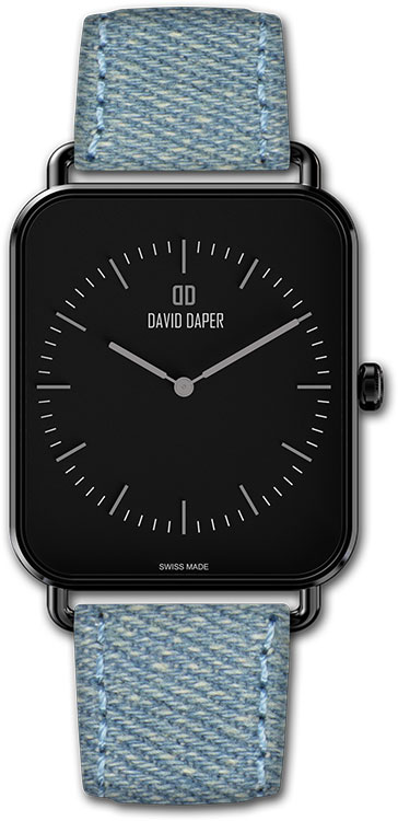 Damski zegarek modowy David Daper Time Square 01.BL.02.J01. Nowoczesny i minimalistyczny dodatek lifestylowy dla miejskich podróżniczek i poszukiwaczek niepospolitych wrażeń. Doskonale dopasuje się on do mobilnej właścicielki, wyznającej idee autentyczności i niezależności. Prostokątny zegarek damski David Daper 01.BL.02.J01 jest rozpoznawalny za swą oryginalność i luksusowy, szwajcarski standard w przystępnej cenie. Jego czytelną tarczę o charakterystycznym, prostym i szykownym wyglądzie zabezpiecza szafirowe szkło premium. Zapewnia ono najwyższą odporność na zarysowania i przejrzystość, jakie mogą zostać zaoferowane we współczesnym zegarmistrzostwie. Koperta tego zegarka damskiego fashion ma rozmiar 34 × 28 i jest wykonana z polerowanej i pokrytej czarną powłoką PVD stali nierdzewnej, wysoce odpornej na zarysowania i korozję. Na jej uszach zawieszony jest pasek skórzany o fakturze dżinsu, który w połączeniu z ciemną obudową i czarną tarczą, czyni powyższy model kreatywnym dodatkiem do codziennego ubioru.