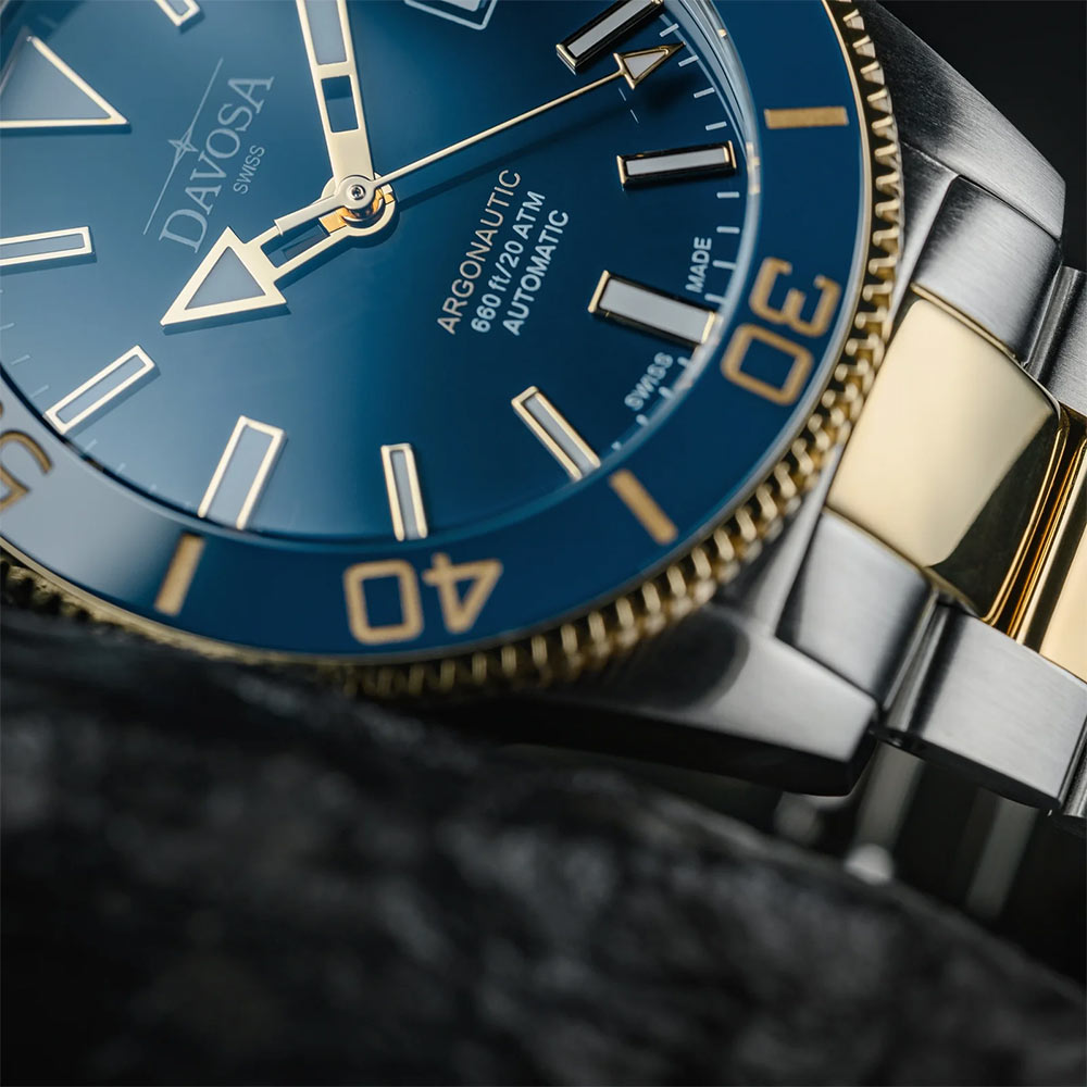 Szwajcarska marka zegarmistrzowska Davosa z dumą prezentuje nurkowy zegarek z kolekcji Argonautic 39. Marce Davosa Swiss zależało na zbudowaniu czasomierza elegancko-sportowego w uniwersalnym rozmiarze. Dzięki ciężkiej pracy inżynierów Davosa powstał zegarek idealny w wersji bicolor na każdą okazję. Czasomierz doskonały, pionierski duch przygody to również wspomnienie postaci Jazona, który był Argonautom i ich przywódcą. Wyruszył on na przygodę poszukiwania złotej runy. Zegarek Davosa zbudowany został z najwyższej jakości materiałów takich jak stal chirurgiczna i ceramika. Oferuje on również wysoką odporność na wodę.