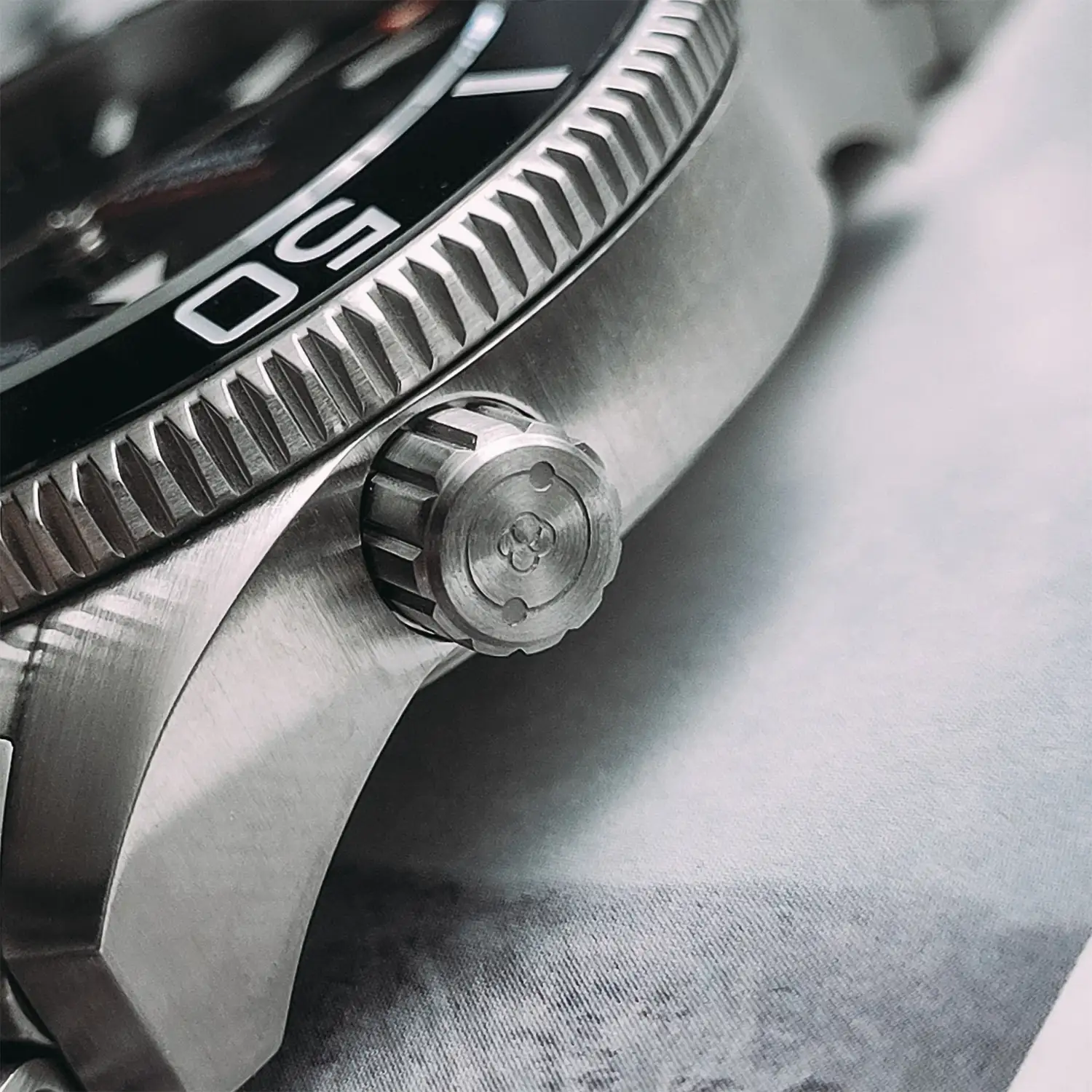 - Obracający się w jednym kierunku pierścień nurkowy z czarną ceramiką, która jest odporna na zarysowania. Nowo zaprojektowany kształt bezla posiada ostre rowki, dzięki którym łatwiej jest operować nim podczas wynurzania.