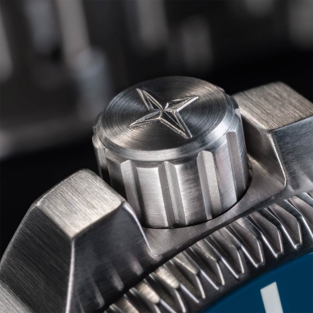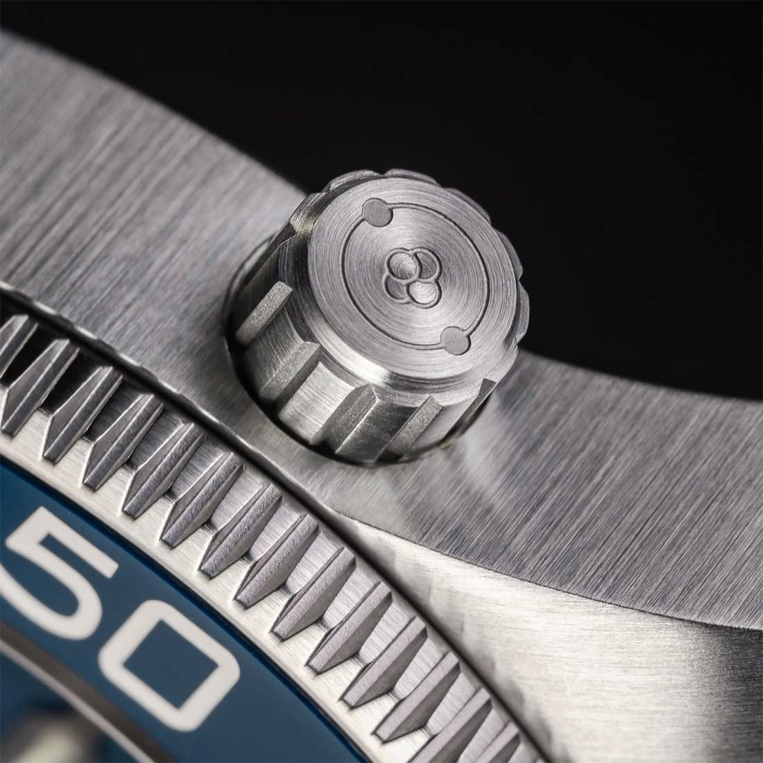 - Obracający się w jednym kierunku pierścień nurkowy z niebieską ceramiką, która jest odporna na zarysowania. Nowo zaprojektowany kształt bezla posiada ostre rowki, dzięki którym łatwiej jest operować nim podczas wynurzania.