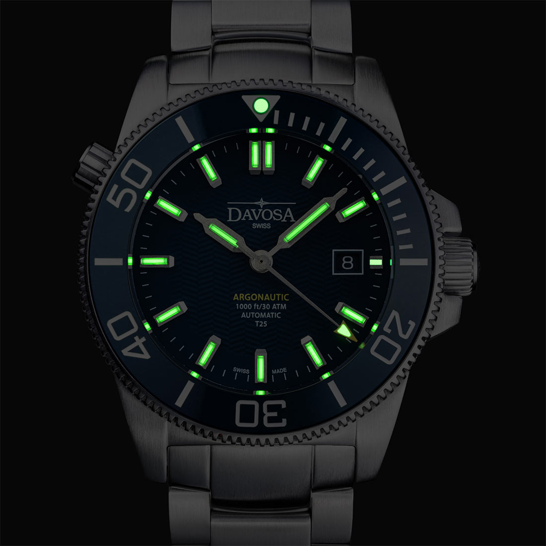Davosa Argonautic Lumis Automatic 161.529.04 jest częścią popularnej serii Argonautic od 2013 roku. Po premierze model wzbudził duże zainteresowanie, dzięki rurkom ze szkła borokrzemianowego wypełnione mieszanką gazowego trytu, które są umieszczone na wskazówkach i oznaczeniach godzin. Zapewniają one stałą jasność bez spadku intensywności – nawet w całkowitej ciemności, bez zewnętrznego źródła energii. To sprawia, że model Lumis szczególnie nadaje się do stosowania w warunkach bardzo słabej widoczności, zarówno w wodzie, jak i nad wodą. Nowy model Argonautic Lumis T25 również posiada tę charakterystyczną cechę. Zegarek posiada profesjonalne funkcje nurkowe cenione wśród miłośników zegarków do nurkowania: