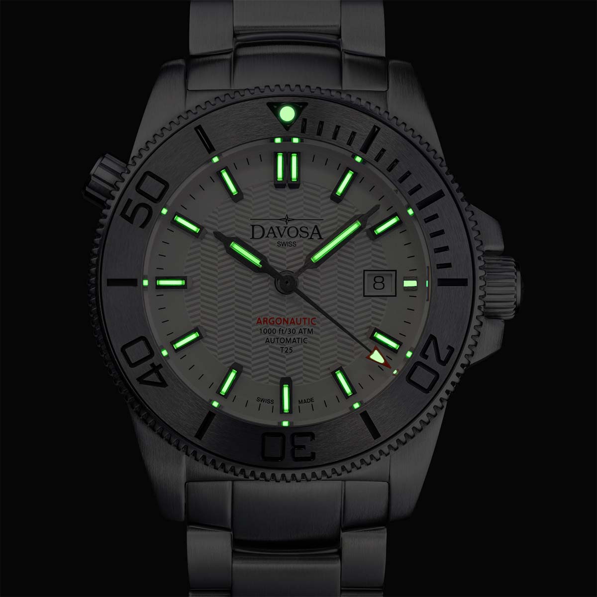 Davosa Argonautic Lumis BS Automatic 161.529.01 jest częścią popularnej serii Argonautic od 2013 roku. Po premierze model wzbudził duże zainteresowanie, dzięki rurkom ze szkła borokrzemianowego wypełnione mieszanką gazowego trytu, które są umieszczone na wskazówkach i oznaczeniach godzin. Zapewniają one stałą jasność bez spadku intensywności – nawet w całkowitej ciemności, bez zewnętrznego źródła energii. To sprawia, że model Lumis szczególnie nadaje się do stosowania w warunkach bardzo słabej widoczności, zarówno w wodzie, jak i nad wodą. Nowy model Argonautic Lumis T25 również posiada tę charakterystyczną cechę. Zegarek posiada profesjonalne funkcje nurkowe cenione wśród miłośników zegarków do nurkowania:
