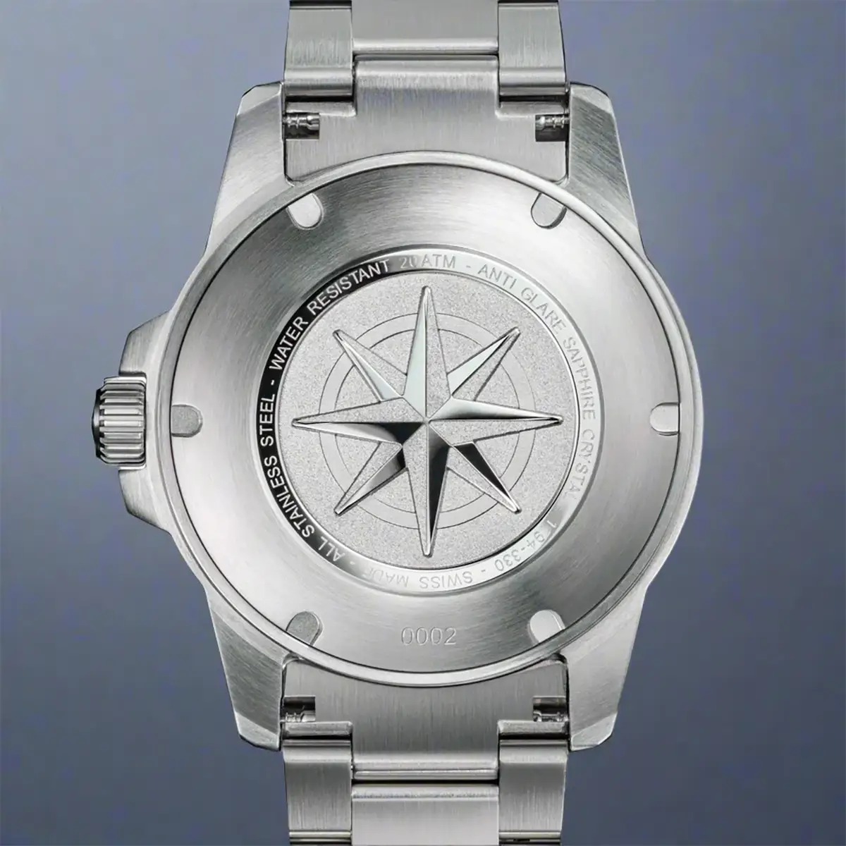 Szkło szafirowe z powłoką antyrefleksyjną dba o przejrzystość i chroni tarczę przed zarysowaniami. Wodoszczelność 200 m (20 ATM) pozwala bez obaw używać zegarka podczas pływania, nurkowania czy uprawiania sportów wodnych.