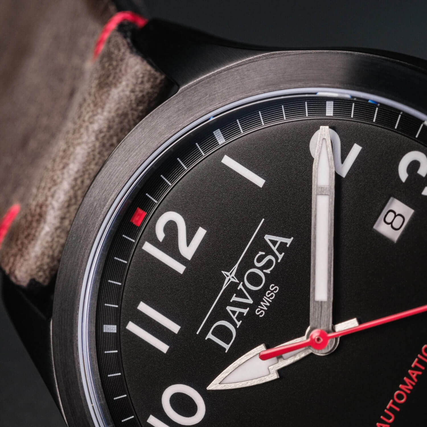 Koperta o średnicy 42 mm wykonana została z odpornej na korozję stali szlachetnej i pokryta czarną powłoką PVD — jej szczotkowane wykończenie oraz mocno radełkowana koronka z emblematem gwiazdy to znak rozpoznawczy marki Davosa. Zastosowane szkło szafirowe z powłoką antyrefleksyjną chroni przed zarysowaniami, a wodoszczelność do 5 ATM sprawia, że zegarek można bezpiecznie nosić w codziennych warunkach. Wnętrze modelu mieści automatyczny mechanizm DAV3021 (na bazie SW200), którego precyzja i niezawodność potwierdza doświadczenie szwajcarskich zegarmistrzów. Dzięki minimalistycznemu datownikowi i doskonale widocznym wskazaniom Axis Automatic doskonale sprawdza się jako zegarek użytkowy, bez kompromisów w zakresie funkcjonalności.