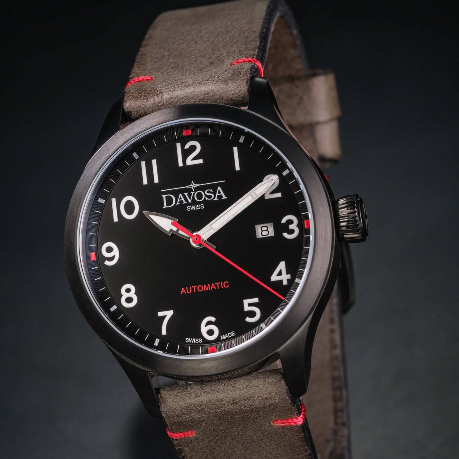 Dodatkową zaletą tego czasomierza jest pasek ze skóry naturalnej o surowej, lekko postarzanej fakturze, wzmocniony przeszyciami w kolorze czerwonym. Całość tworzy zegarek, który równie dobrze prezentuje się z parką i plecakiem, jak i z dziennym zestawem smart casual. Zegarek Davosa Automatic Pilot 161.574.51 na pasku skórzanym nie szuka atencji – on działa bez zbędnych słów.