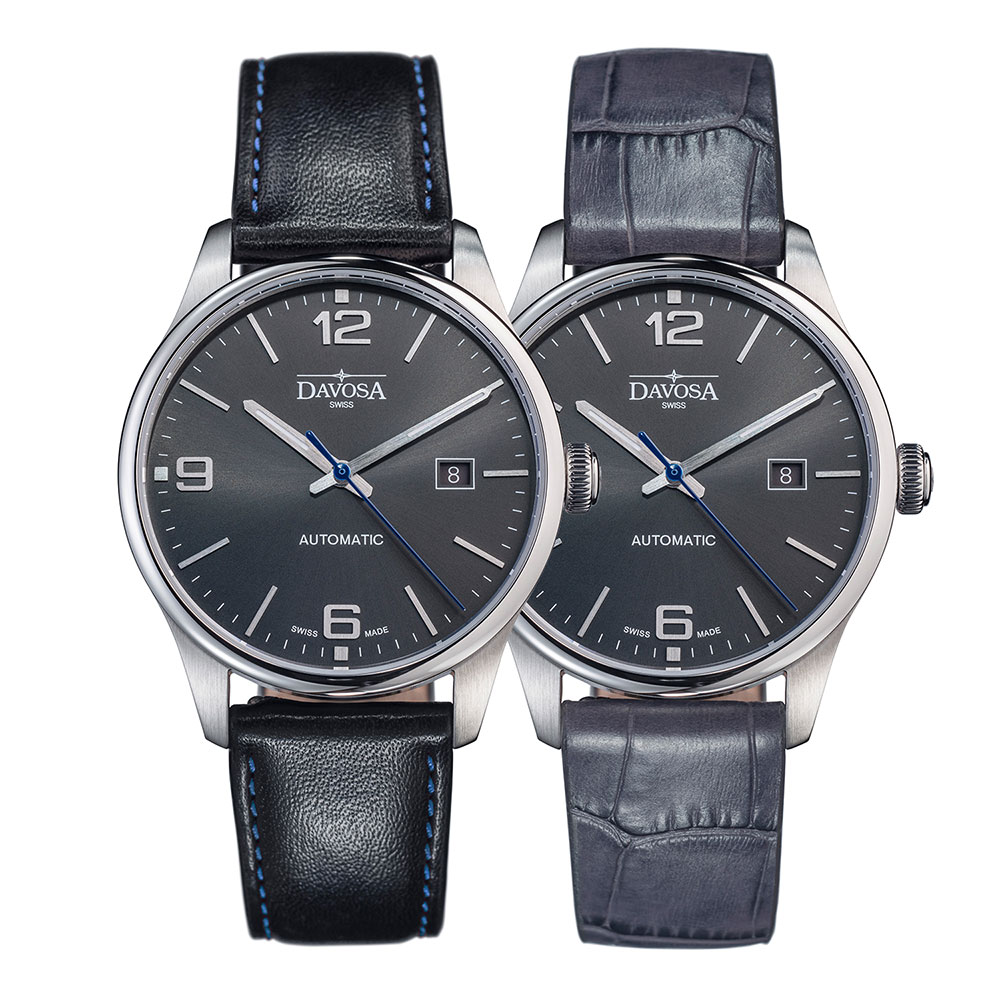 Zegarek męski Davosa Gentleman Automatic został specjalnie zaprojektowany z wymaganiami codziennego życia biznesowego. Dzięki wysokości koperty 9,8 mm i średnicy 40 mm, z łatwością znika pod każdym mankietem koszuli. Gustownie wyważona konstrukcja, trzy proste wskazówki, cztery satynowane elementy koperty i proste indeksy nadają klasycznego wyglądu a elegancji dodaje skórzany pasek. Zegarek posiada system szybkiego zmieniania paska, dzięki zastosowaniu specjalnych teleskopów. Pozwala to dostosować zegarek Davosa Gentleman Automatic do innej okazji w ciągu kilku sekund, zamiast patrzeć na miejscu po zmianie stroju. W zestawie znajdziemy dodatkowy pasek.