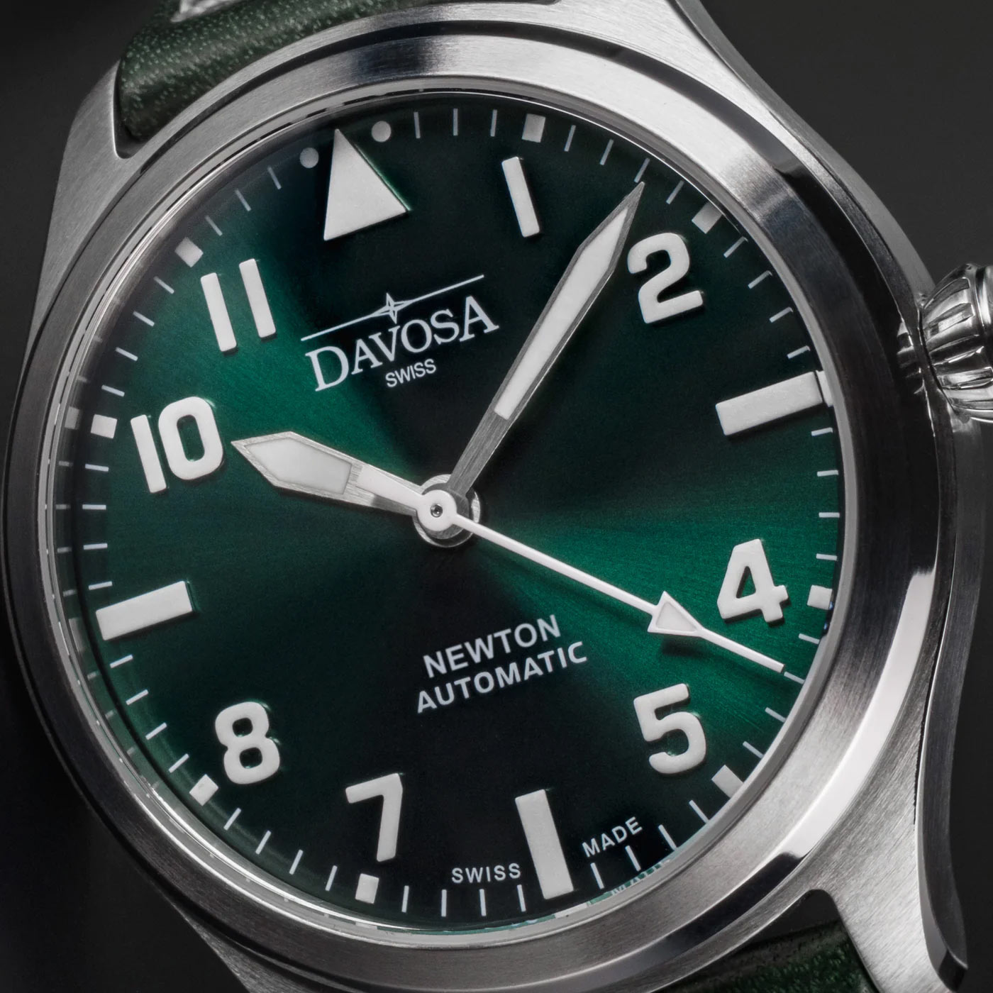 Zegarek męski w stylu lotniczym Davosa Newton Pilot Automatic 161.530.75 zaprojektowany z okazji 120. rocznicy pierwszej próby lotu braci Wright. Zielony wariant z nowej serii Davosa Newton Pilot Automatic opracowanej specjalnie z myślą o wymagających potrzebach lotników. Najświeższa seria dołącza do Newton firmy DAVOSA, poświęconej wynalazcy czasu, Izaakowi Newtonowi.