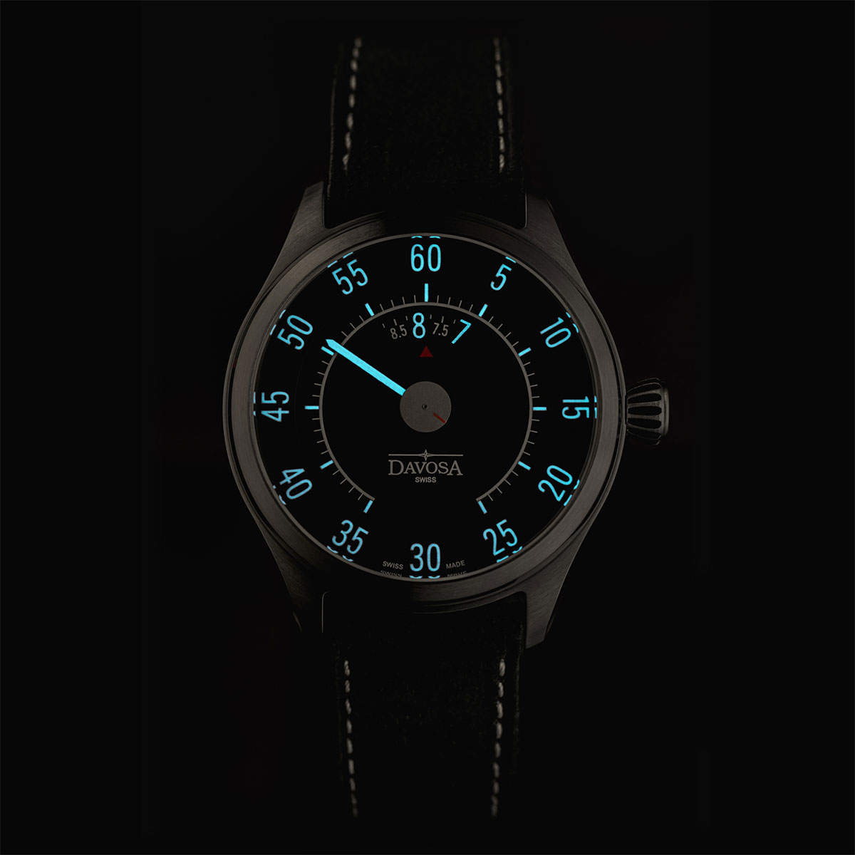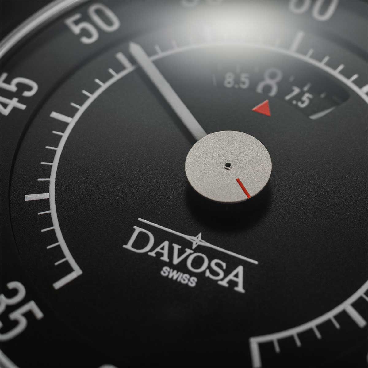 W latach 50 i 60 XX wieku, w erze niemieckiego cudu gospodarczego i Woodstocku, samochód był uosobieniem wolności osobistej - potężnym symbolem nowych początków, przygody i finansowego dobrobytu. Davosa Newton Speedometer 161.587.55 jest dedykowany tej wspaniałej erze. Zniknęły klasyczne wskazówki i datownik, których można się spodziewać. Zamiast tego szwajcarski producent zegarków stworzył tarczę, która mogłaby pochodzić z kokpitu legendarnego samochodu sportowego. Charakteryzuje się subtelną elegancją, swoją wyrazistością i ponadczasowością przykuwa wzrok. Podobnie jak w branży motoryzacyjnej w latach pięćdziesiątych i sześćdziesiątych, konstruktorzy DAVOSA wnieśli szczególną kreatywność do projektu tarczy Speedometer Newton. Wskazówka godzinowa została zastąpiona obracającą się tarczą, która wskazuje godzinę w okienku na godzinie 12. Dokładną godzinę odczytujemy za pomocą czerwonej, eleganckiej strzałki. Centralnie umieszczona wskazówka minutowa nawiązuje do prędkościomierzy w samochodach, jest duża i czytelna a skala minutowa w odstępach co pięć jest wyrażona klasyczną, prostą czcionką. Pośrodku, dysk sekundowy dyskretnie obraca się w postaci matowego srebrnego krążka zaakcentowanego czerwoną linią. Ta doskonała kompozycja jest dostępna w neutralnej czerni z białą Super-LumiNova BGW09. Przy słabym oświetleniu materiał świecący pozwala odczytać godziny i minuty w kolorze bladoniebieskim. Przyzwyczajenie się do czytelności z pewnością wymaga trochę czasu, ale kiedy już zrozumieją Państwo podstawową zasadę, to Davosa Newton Speedometer stanie się naprawdę fascynującym zegarkiem, który na pewno przykuwa wzrok.