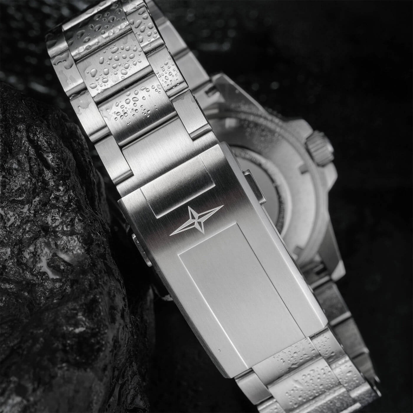 Ternos Ceramic GMT Automatic mierzy 40 mm szerokości i skrywa w sobie niezawodny automatyczny mechanizm Davosa DAV 3032 na bazie Sellita SW330, który osiąga 42-godzinną rezerwę chodu. Czarna tarcza oraz wskazówki wyposażone w Super-LumiNova w jakości BGW09 gwarantują doskonałą czytelność nawet przy słabej widoczności. Wskazówka GMT wyraźnie wyróżnia się na tle czarnej tarczy. Wytrzymała bransoleta z pełnych ogniw z możliwością regulacji na każdy nadgarstek. Zastosowane zapięcie bransolety zawiera dodatkową blokadę, która chroni przez przypadkowym odpięciem.
