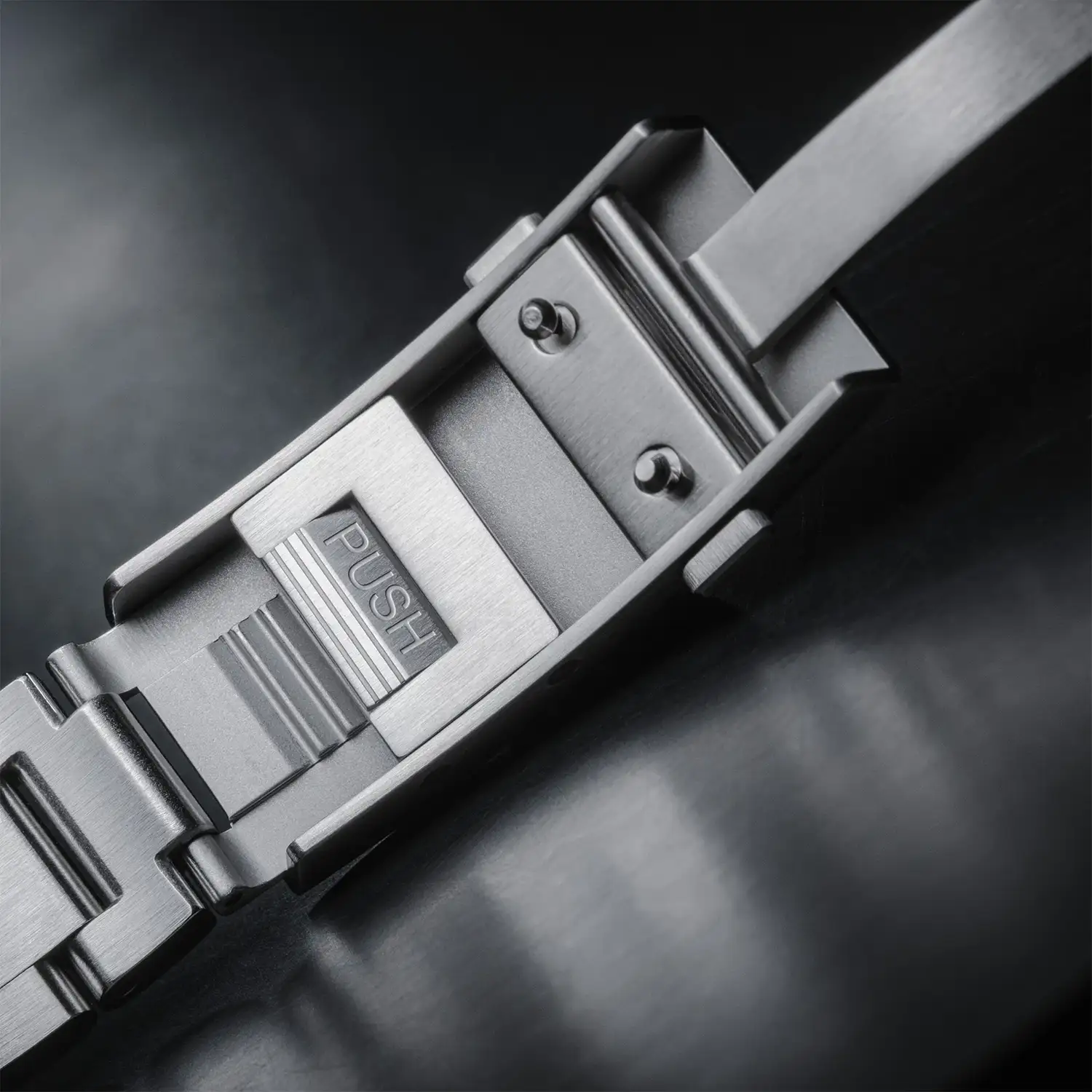 Najważniejszym wyróżnikiem tej referencji jest stalowa bransoleta Jubilee o pięciorzędowej konstrukcji ogniw. Polerowane elementy środkowe kontrastują z satynowanymi częściami zewnętrznymi, nadając zegarkowi bardziej elegancki, nieco vintage’owy charakter. Jednocześnie drobniejsze ogniwa sprawiają, że bransoleta bardzo dobrze układa się na nadgarstku, a zapięcie z mikroregulacją pozwala szybko dopasować obwód, także w cieplejsze dni.