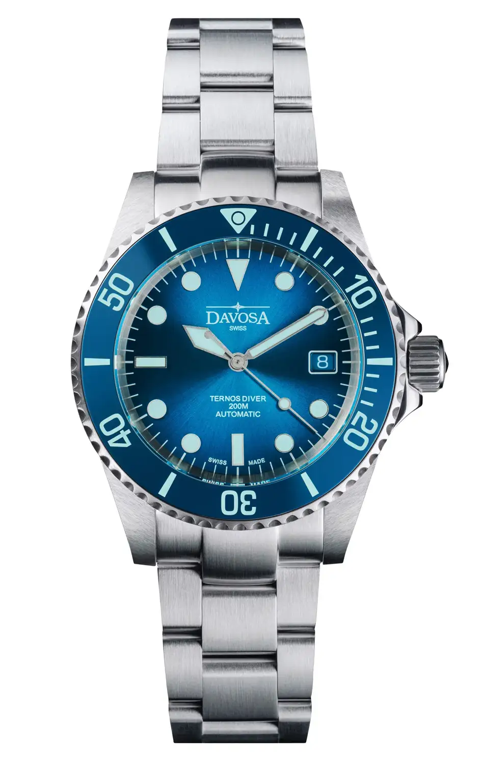 Davosa Ternos Diver Blue Lagoon to limitowany zegarek nurkowy o tarczy inspirowanej błękitem laguny. Model oferuje ceramiczną lunetę, wodoszczelność 20 ATM i szwajcarski mechanizm automatyczny.