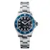 Wyjątkowy efekt wizualny zapewnia tarcza z wykończeniem sunburst. Jej centralna część utrzymana jest w jaśniejszym tonie niebieskiego, który stopniowo przechodzi w głęboki odcień przy krawędzi, nadając całości wyraźnej trójwymiarowości. Naniesione indeksy oraz wskazówki otrzymały warstwę Super-LumiNova® o jasnoniebieskim połysku, dzięki czemu zegarek pozostaje perfekcyjnie czytelny również w ciemności. Wrażenie to potęguje ceramiczna luneta jednokierunkowa, charakteryzująca się twardością 1250 HV i wyjątkową odpornością na zarysowania, wysokie temperatury oraz działanie soli morskiej.