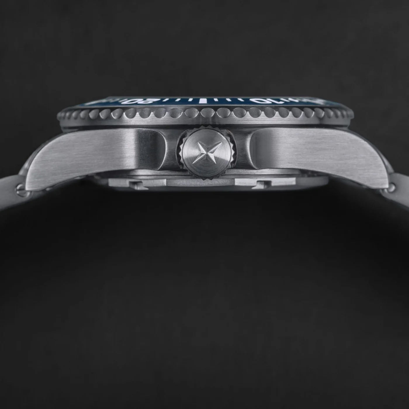 Model ten wyróżnia się tarczą w intensywnym, niebieskim kolorze, idealnie współgrającą z ceramicznym bezelem w tym samym odcieniu. Luneta obraca się w jednym kierunku, co stanowi niezbędne narzędzie podczas nurkowania. Wykonana z ceramiki o wysokiej odporności na zarysowania, zachowuje swój estetyczny wygląd przez wiele lat użytkowania. Dla podniesienia bezpieczeństwa i komfortu odczytu zastosowano masę Super-LumiNova® BGW9, która intensywnie świeci w ciemności, pokrywając indeksy, wskazówki oraz znacznik na pierścieniu.