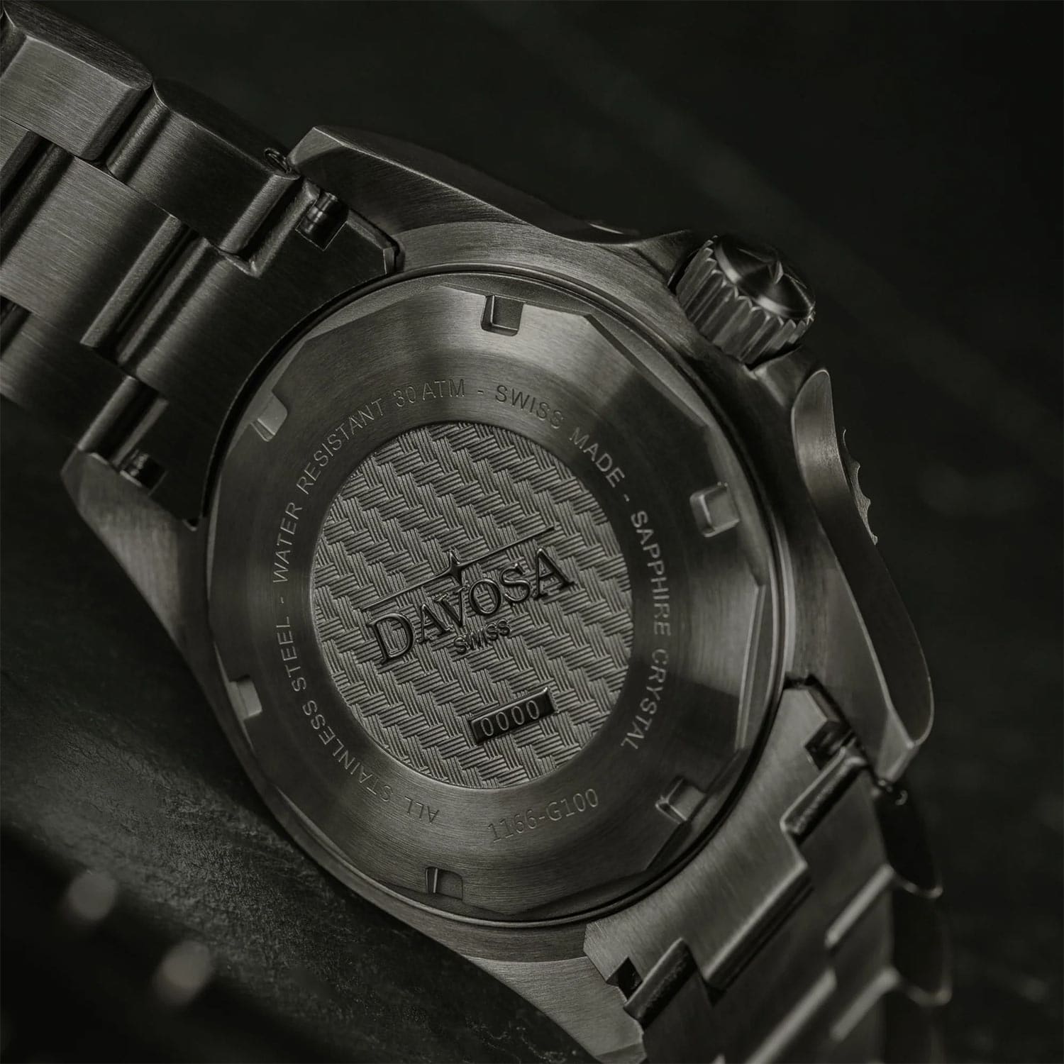 Zegarek męski Davosa 161.539.50 oferowany jest w rozmiarze koperty wynoszącej 42 mm. Jej niezwykle wysoka klasa szczelności do 300 metrów pozwala na bezpieczne pływanie, jak i nurkowanie. Po prawej stronie obudowy, w tradycyjnym miejscu umieszczona jest koronka, która jest zakręcana. Rewers to stalowy, zakręcany dekiel, który skutecznie zamyka całą konstrukcję. Na froncie nałożona została obrotowa luneta, której wkłądka stworzona została z karbonu. Zegarek Davosa zestawiony jest z przeprojektowaną bransoletą metalowa TriaLink ze stali. Nowo opracowanym przez DAVOSA system WaveSlide umożliwia wygodną regulację — bez potrzeby użycia dodatkowych narzędzi. Cały czasomierz wzbogacony został o powłokę PVD.