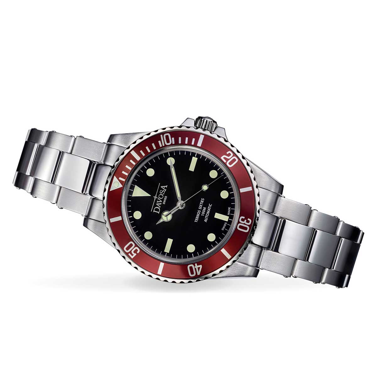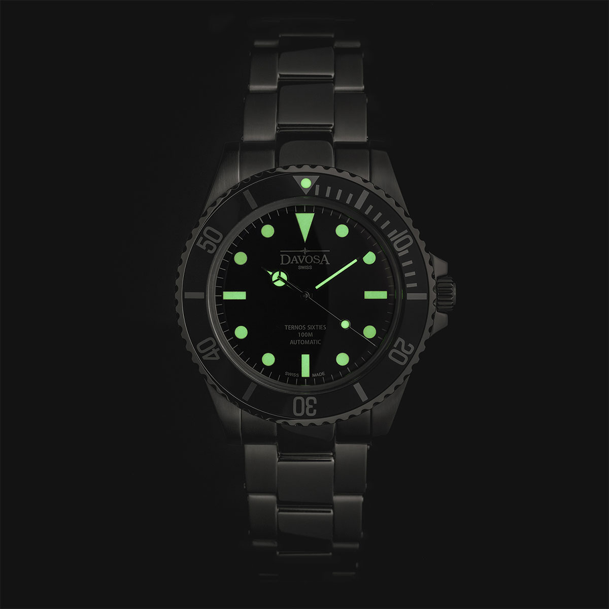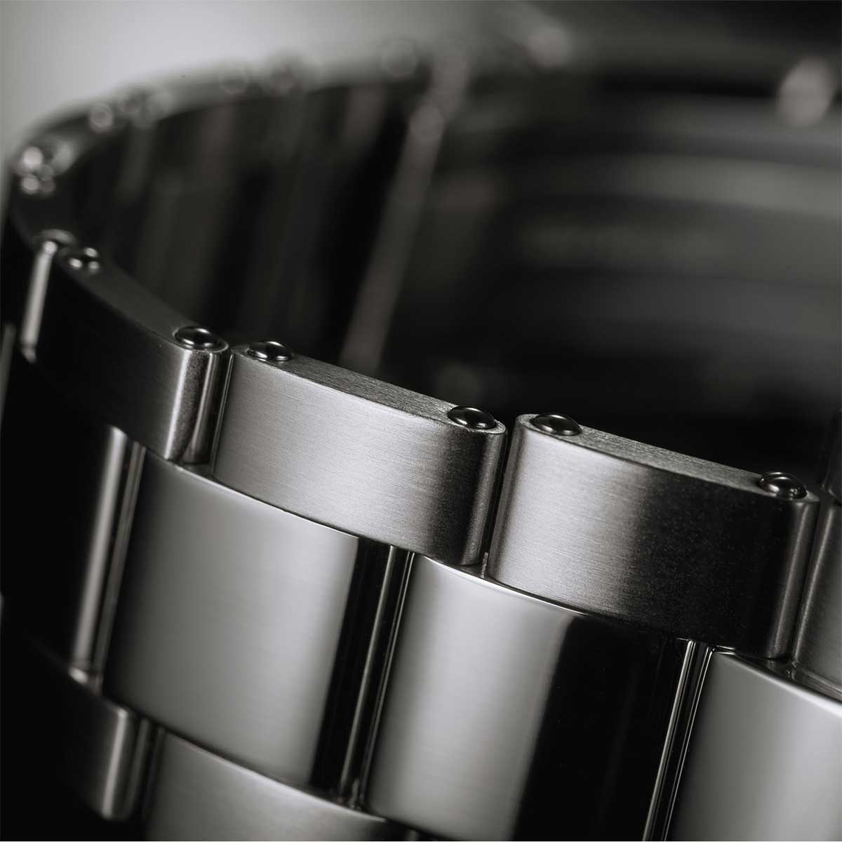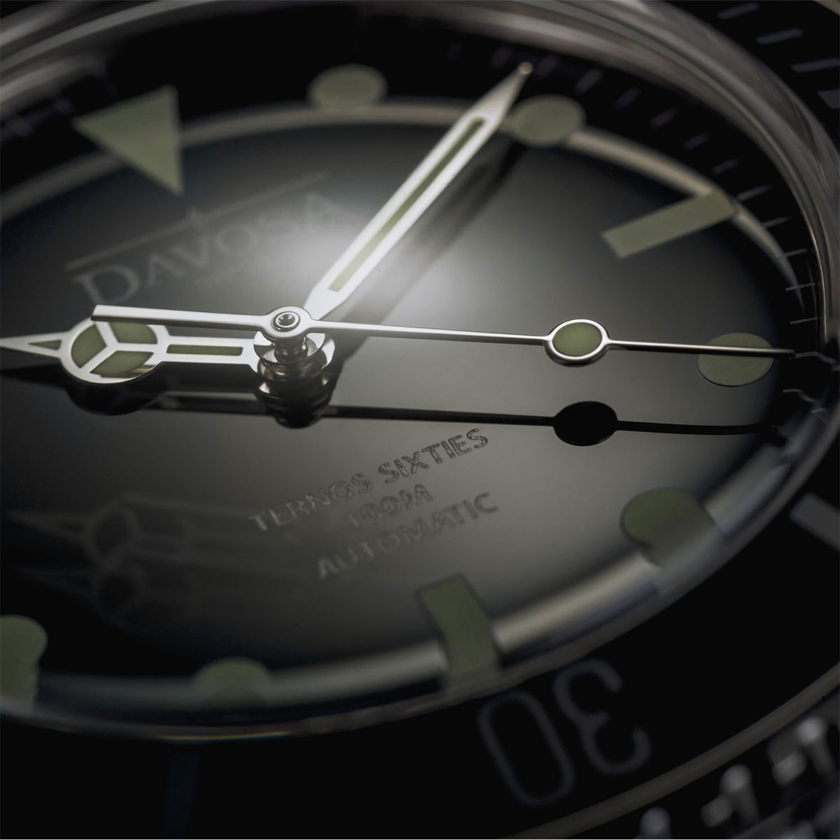 W dzisiejszych zegarkach nurkowych i nie tylko stalowe bransolety do zegarków składają się na ogół z indywidualnie przykręcanych ogniw ze śrubami, które są zatopione w każdym ogniwie, dzięki czemu są prawie niewidoczne. Jednak w ostatnim stuleciu zegarki często posiadały widoczne nity, które można było łatwo rozpoznać po ich wypukłych profilach wzdłuż zewnętrznej krawędzi ogniw. DAVOSA dała Ternos Sixties metalowy pasek, który ożywia ten klasyczny wygląd. Jednak zgodnie z duchem czasu nity dolnych łączników są mimo to odkręcane, aby umożliwić łatwą regulację do nadgarstka.