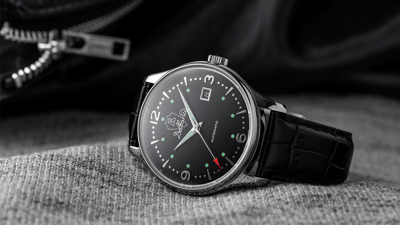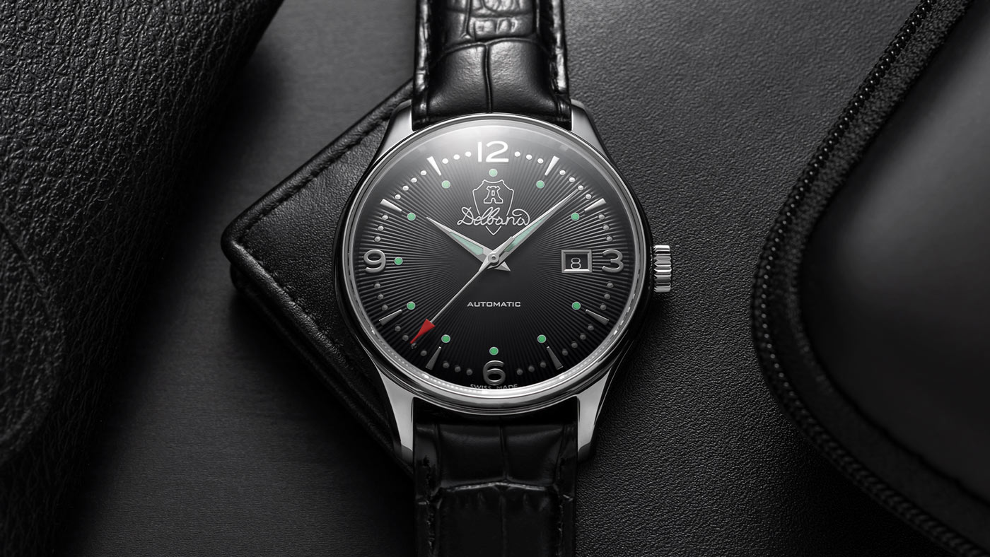 Luksusowy szwajcarski zegarek męski marki Delbana z kolekcji Della Balda wykonany w stylu retro. Model o numerze referencji 41603.722.6.034 posiada okrągłą kopertę stworzoną ze stali szlachetnej w kolorze srebrnym. Do obudowy przymocowany został czarny pasek ze skóry naturalnej z klasycznym zapięciem na sprzączkę. Ciemny cyferblat z indeksami mieszanymi wzbogacony o dodatek w postaci funkcji datownika na godzinie trzeciej przykryty został niezwykle twardym i ciężko do zarysowania szkłem szafirowym. Automatyczny mechanizm Sellita SW200 Swiss Made z rezerwą chodu do 38 godzin jest sercem czasomierza. Pracę mechanizmu możemy podziwiać dzięki przeszklonemu deklowi na odwrocie koperty.
