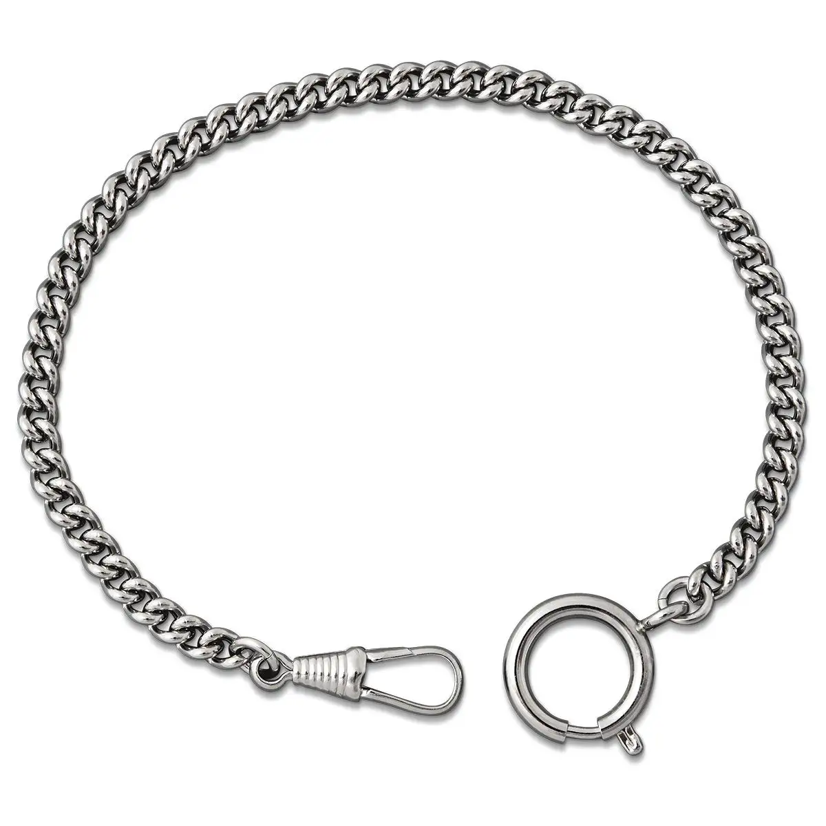 Dewizka Beco 840620 to lekki i stylowy łańcuszek do zegarka kieszonkowego, wykonany z niklowanego mosiądzu. Dzięki drobnemu, okrągłemu splotowi typu pancerka o szerokości 1,5 mm, dewizka prezentuje się subtelnie i elegancko – idealnie pasuje do klasycznych zegarków o delikatniejszym wyrazie.