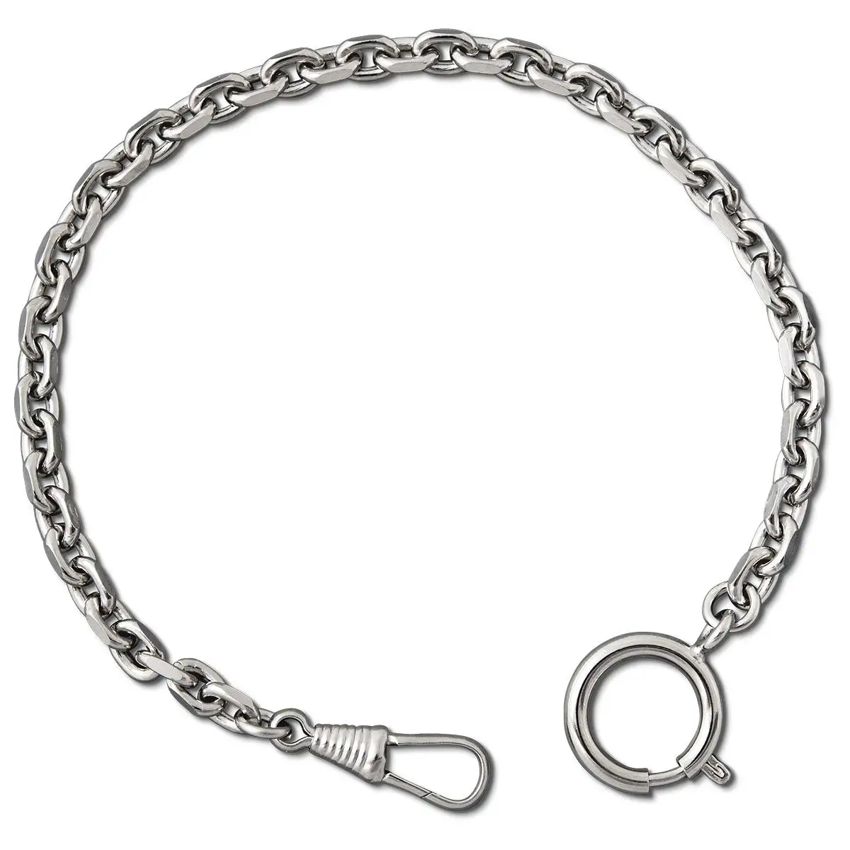 Łańcuszek o splocie typu kotwiczka i szerokości 1,7 mm jest subtelny, ale wystarczająco wytrzymały, by utrzymać klasyczny zegarek kieszonkowy. Z jednej strony znajduje się sprężynowy pierścień do przypięcia dewizki do guzika, szlufki lub kieszeni. Z drugiej – klips umożliwiający szybkie zaczepienie zegarka. Tego typu konstrukcja sprawia, że dewizka pasuje do większości modeli kieszonkowych, zarówno współczesnych, jak i stylizowanych na retro.