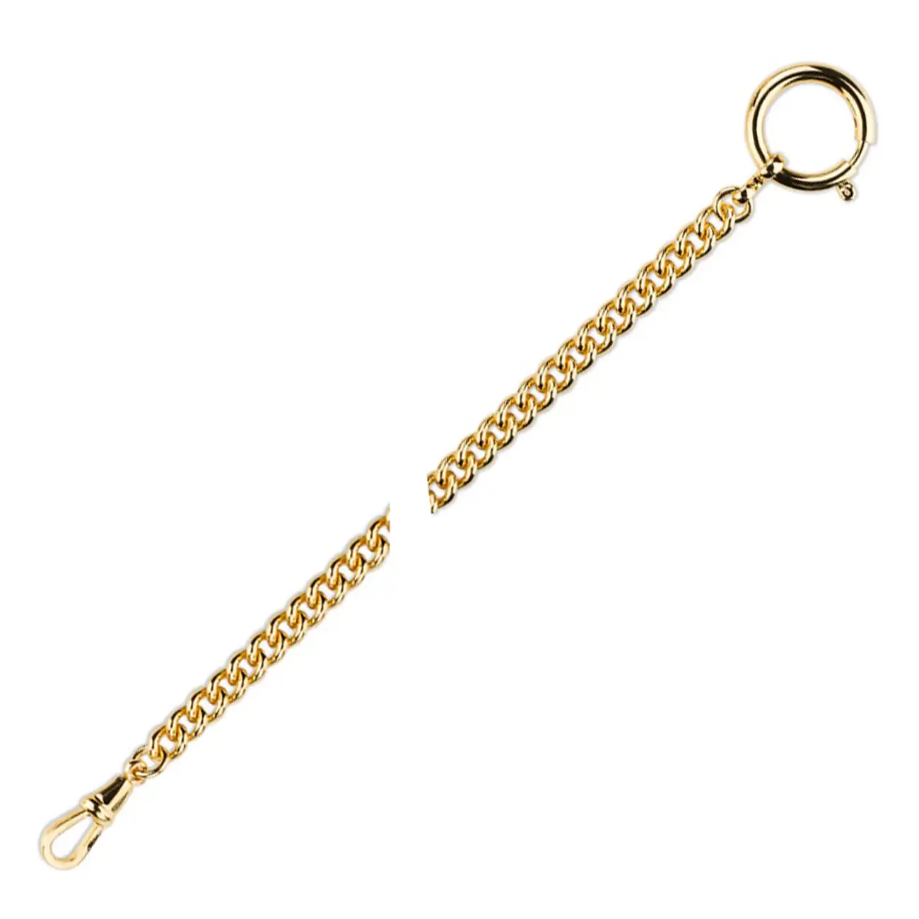 Zaprojektowana z dbałością o detale, dewizka została wyposażona w sprężynowy pierścień i solidny karabińczyk, co gwarantuje bezpieczne i komfortowe mocowanie do ubrania oraz zegarka. Ciepły, złoty odcień doskonale współgra z kopertami zegarków kieszonkowych w podobnej tonacji, podkreślając ich luksusowy charakter.
