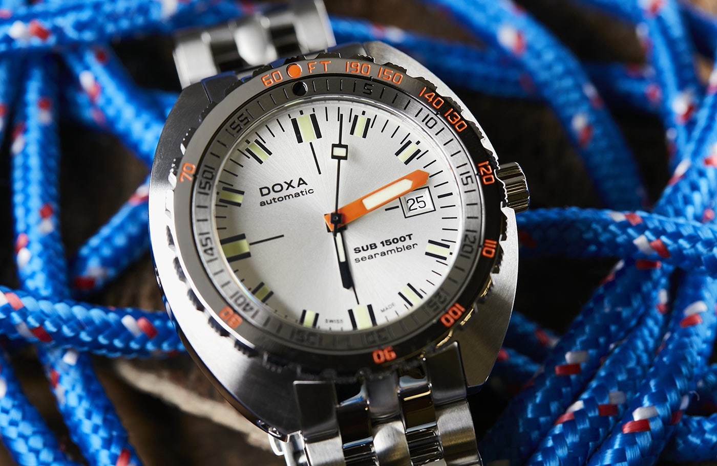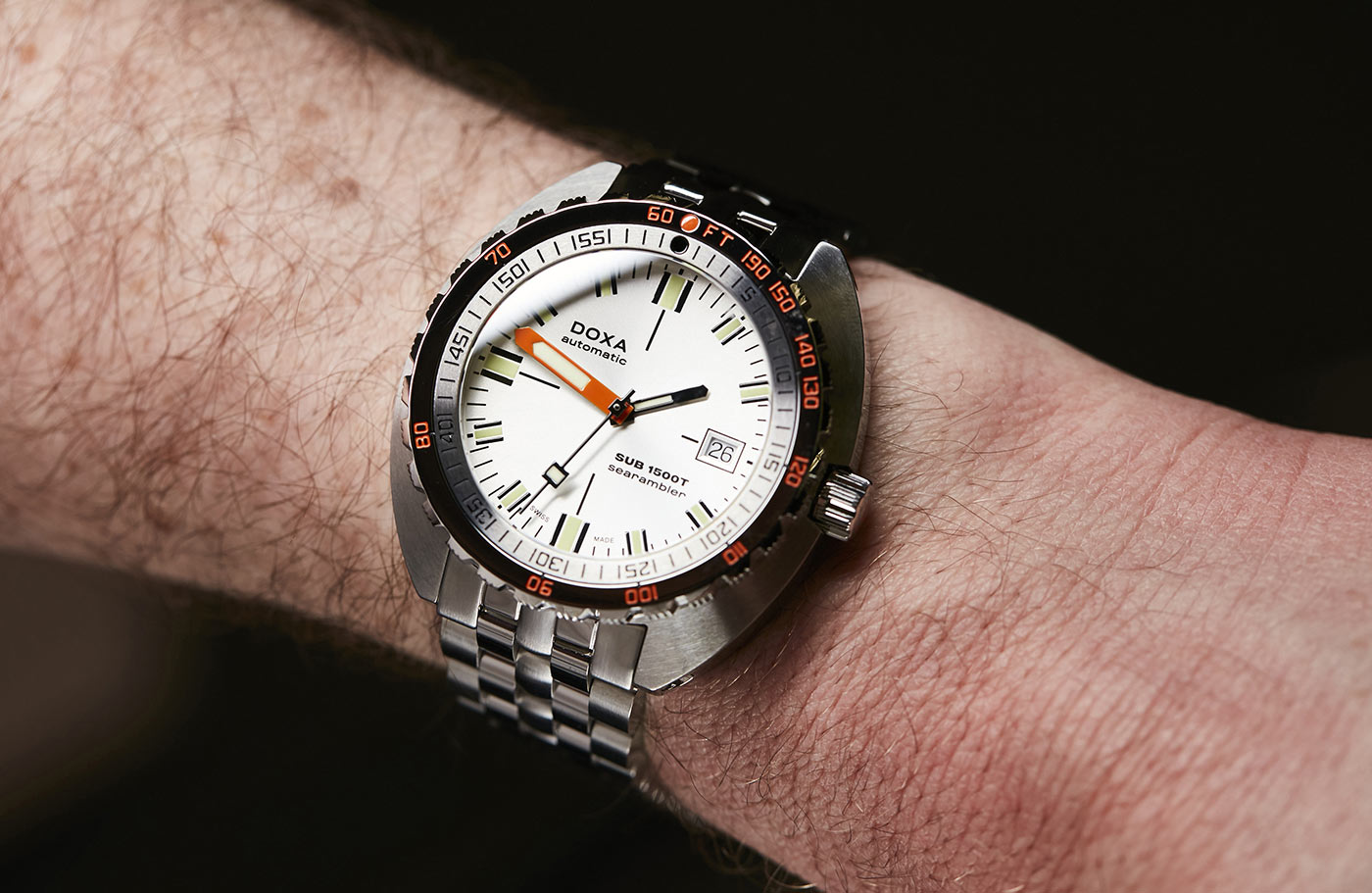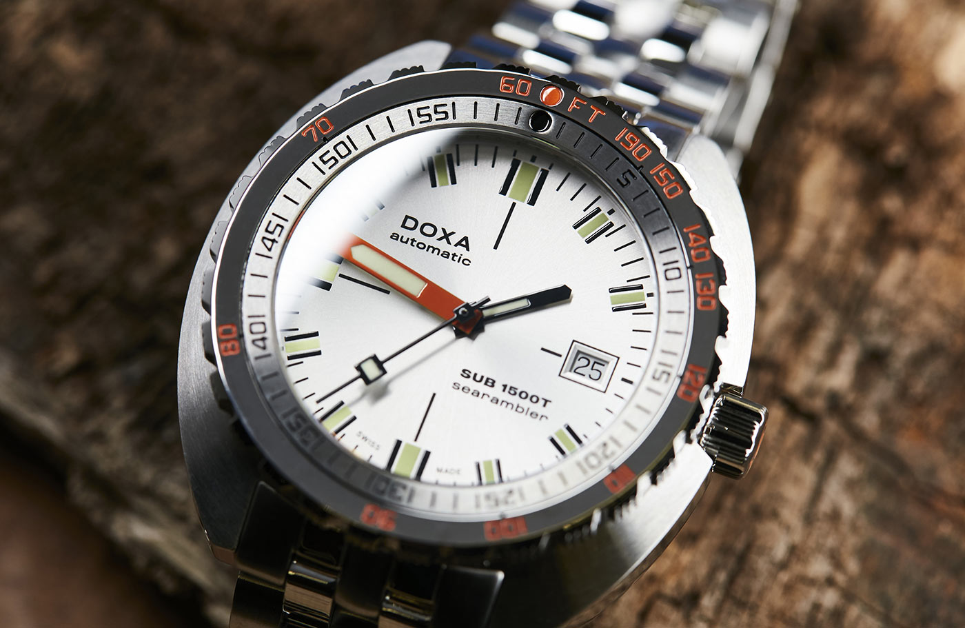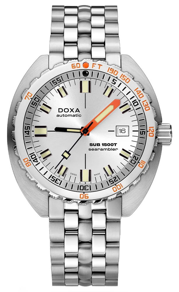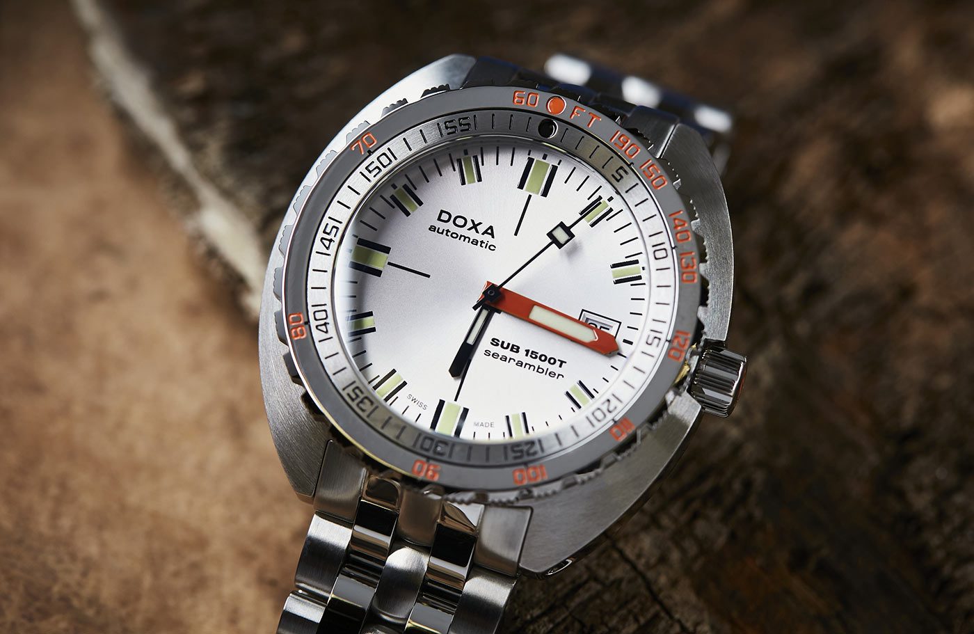 Nowy zegarek nurkowy Doxa SUB 1500T Searambler jest wyposażony w 45-milimetrową, wytrzymałą kopertę ze zintegrowanym zaworem uwalniania helu — tym samym, co jego legendarny poprzednik. Co więcej, posiada on opracowaną dla serii SUB w 1964 roku, opatentowaną ramkę z podwójnym oznaczeniem czasu nurkowania (minuty) i głębokości (w stopach). Wszystko po to, aby obliczyć bezpieczne wynurzenie bez przystanków dekompresyjnych.