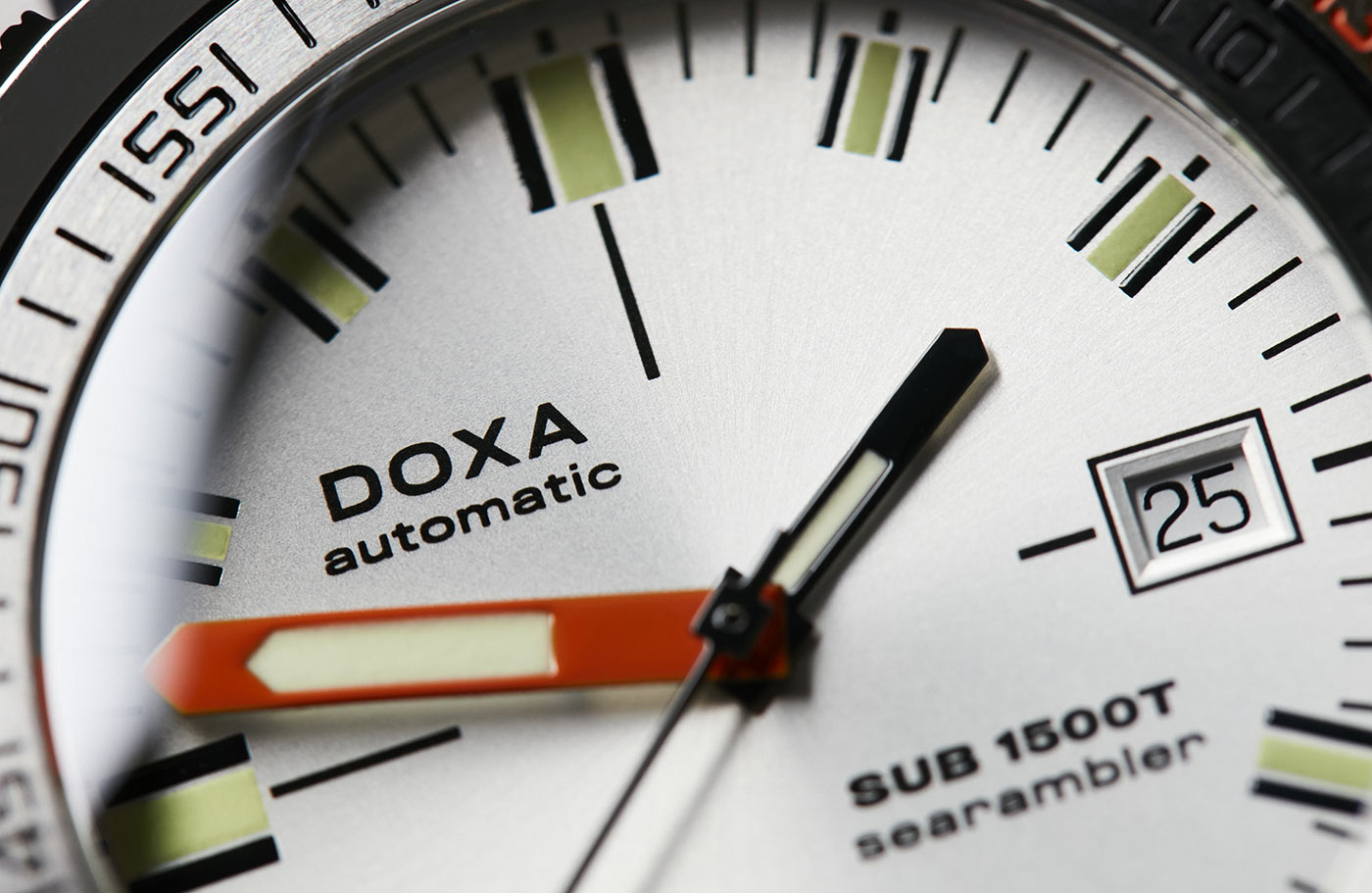 Wszystkie elementy, które dostarczają informacji o zasadniczym znaczeniu dla misji nurkowej, są wyposażone w szwajcarską powłokę luminescencyjną Super-LumiNova® zapewniającą optymalną czytelność pod wodą. 5-rzędowa, naprzemiennie polerowana i szczotkowana bransoleta wykonana ze stali szlachetnej jest przymocowana śrubami i posiada składane zapięcie z przedłużeniem dla skafandra nurkowego. Zarówno na zapięciu, jak i zakręcanej koronce, wyeksponowany jest ekskluzywny symbol ryby DOXA. Całość napędza szwajcarski mechanizm o automatycznym naciągu i z rezerwą chodu do 50 godzin.
