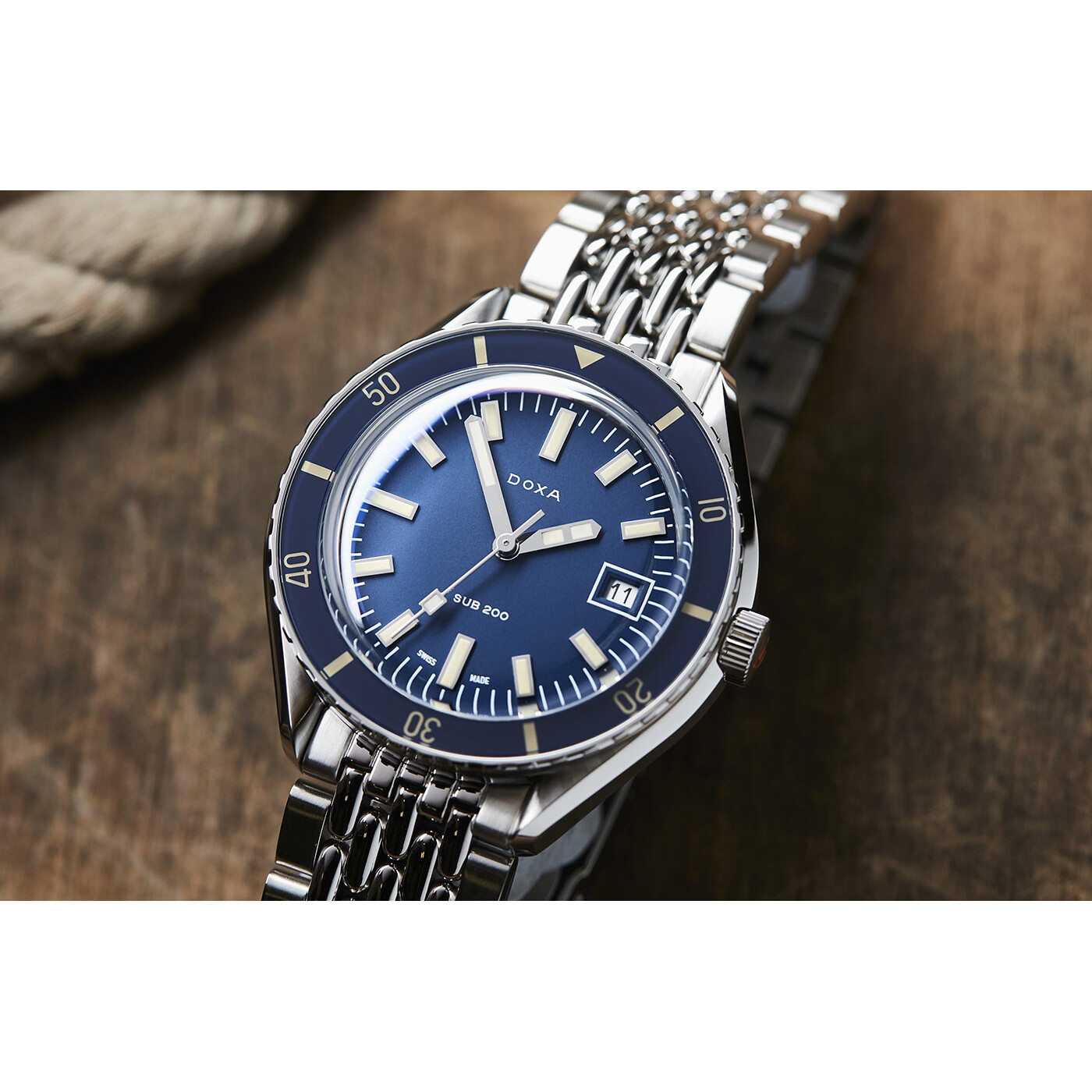 Zaprezentowana na targach Baselworld 2019 seria DOXA SUB 200 oferuje trzywskazówkowe, profesjonalne zegarki automatyczne dla nurków o rozmiarze 42 mm, których klasa wodoszczelności pozwala na nurkowanie do głębokości 200 metrów (20 ATM). Każdy wykonany jest ze stali nierdzewnej 316L i posiada odporne na zarysowania szkło szafirowe wzbogacone o powłokę antyrefleksyjną i prezentujące charakterystyczną krzywiznę kopuły tworzoną dawniej z pleksiglasu.