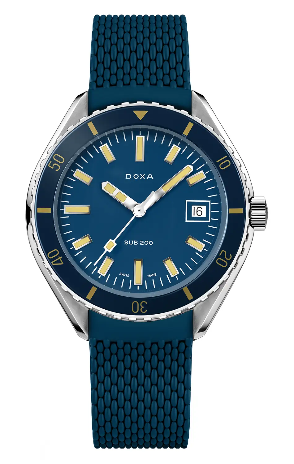 Zaprezentowana na targach Baselworld 2019 seria DOXA SUB 200 oferuje trzywskazówkowe, profesjonalne zegarki automatyczne dla nurków o rozmiarze 42 mm, których klasa wodoszczelności pozwala na nurkowanie do głębokości 200 metrów (20 ATM). Każdy wykonany jest ze stali nierdzewnej 316L i posiada odporne na zarysowania szkło szafirowe wzbogacone o powłokę antyrefleksyjną i prezentujące charakterystyczną krzywiznę kopuły tworzoną dawniej z pleksiglasu.