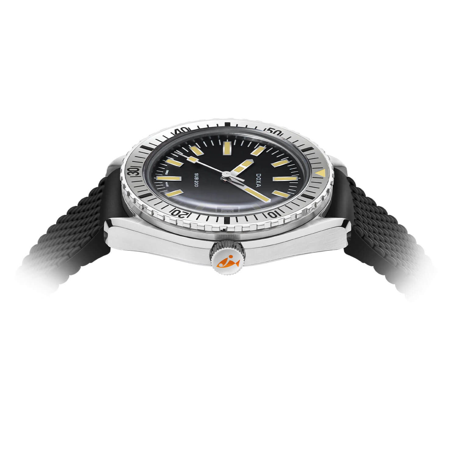 Czarna tarcza nie została tu użyta przypadkowo – to kolor, który zapewnia wysoki kontrast w wodzie. Dzięki zastosowaniu indeksów i wskazówek pokrytych Super-LumiNovą® model ten pozostaje czytelny nawet w zupełnej ciemności. Na wysokości godziny trzeciej umieszczono subtelny datownik w ramce, który harmonijnie uzupełnia kompozycję cyferblatu. Ten zegarek nie powstał po to, by przyciągać spojrzenia w gablotach – zegarek nurkowy Doxa SUB 200 Automatic 796.10.101.20 na gumowym pasku to sprzęt, który został stworzony do działania, nie do pozowania.