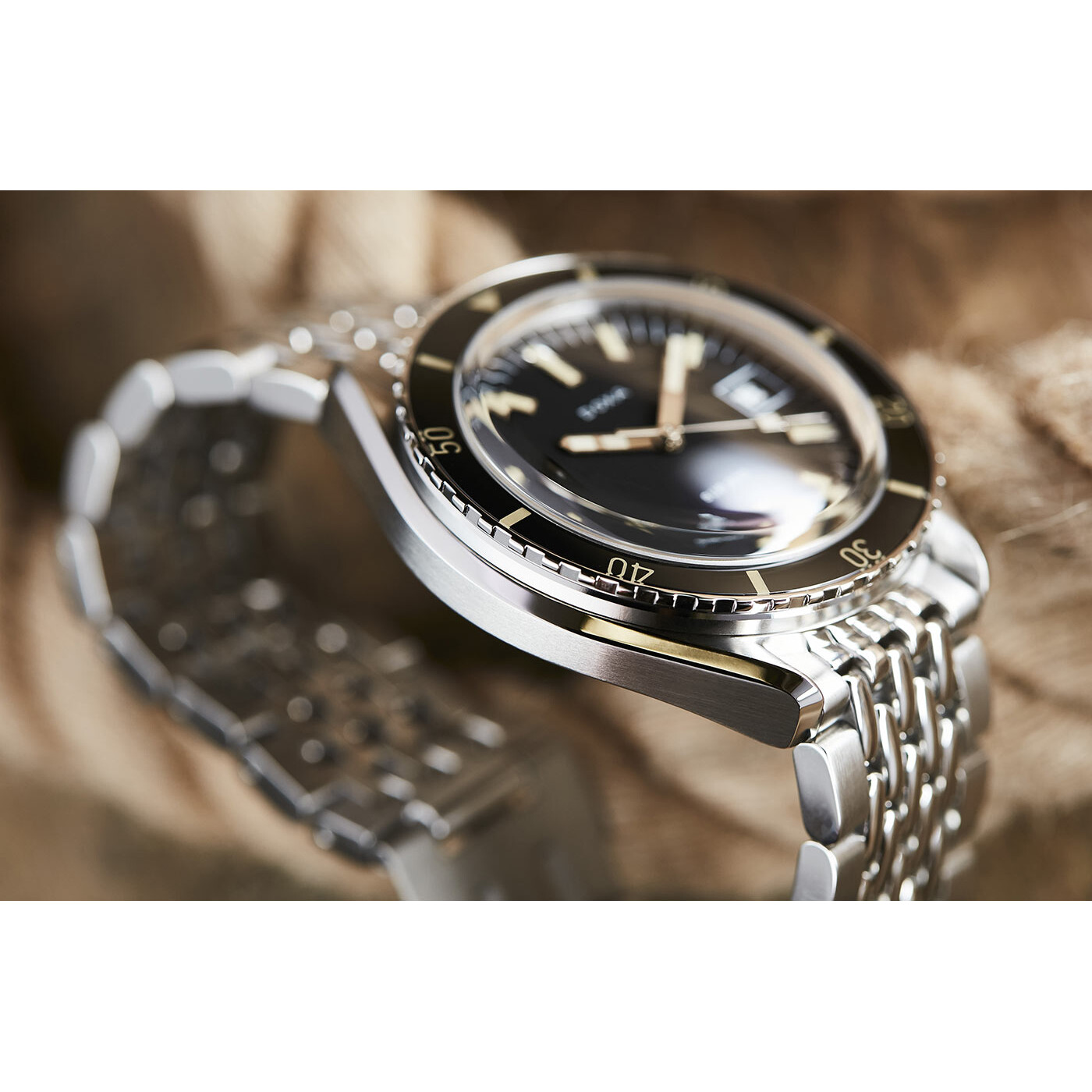 Cała Doxa Sharkhunter zawieszona jest srebrnej bransolecie o konstrukcji w stylu „oddzielne koraliki ryżu” zespojonej śrubami zapewniającymi bezpieczne dopasowanie. Na nadgarstku zamyka się ją za pomocą solidnego, składanego zapięcia z ekskluzywnym symbolem ryby (DOXA fish). Bransoleta zegarka nurkowego DOXA SUB 200 posiada także przedłużenie, dzięki któremu czasomierz można z powodzeniem zapiąć na nadgarstku w skafandrze nurkowym. Napęd stanowi szwajcarski mechanizm mechaniczny o automatycznym naciągu wyposażony w 38-godzinną rezerwą chodu, 26 kamieni i częstotliwość 28 800 vph (4,0 Hz).