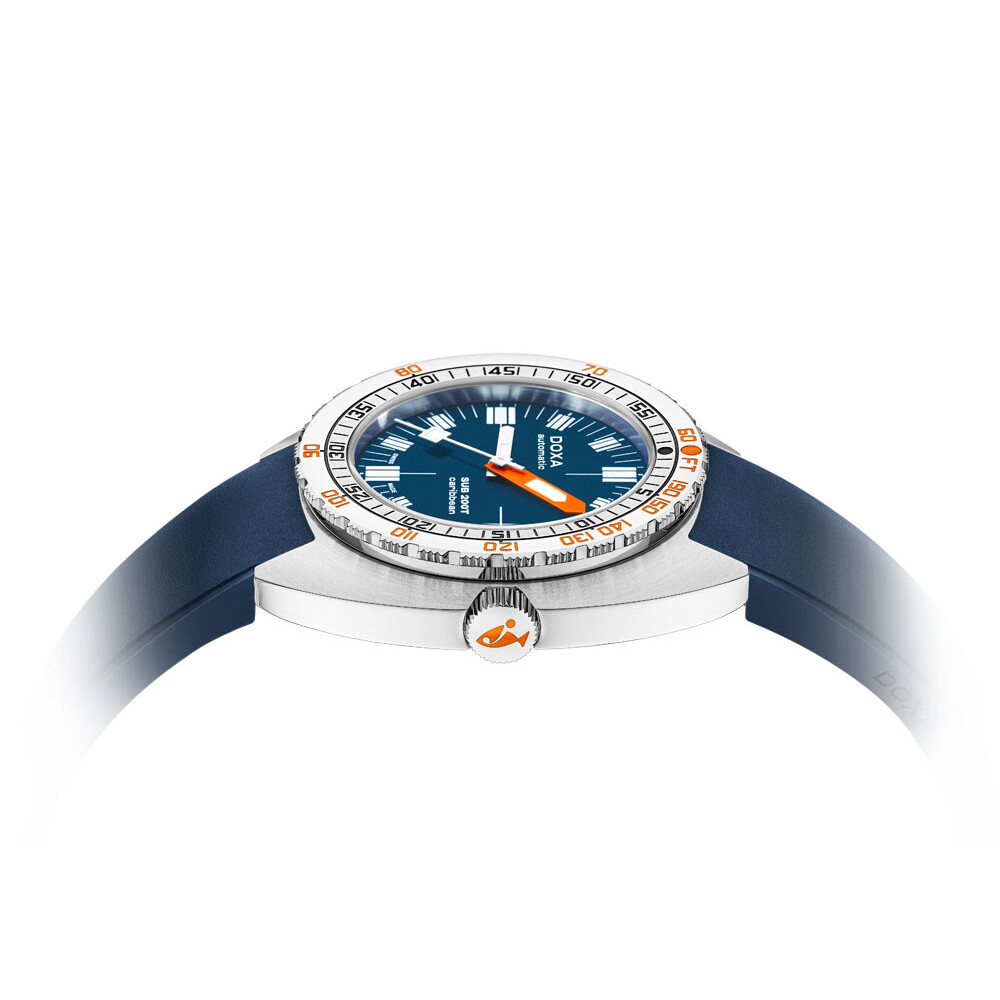 Marka DOXA wprowadziła nową interpretację projektu tarczy, dążąc do bardziej współczesnej obecności wizualnej na nadgarstku. Tarcza, chroniona przez odporne na zarysowania szkło szafirowe z powłoką antyrefleksyjną, prezentuje intensywny kolor niebieski. Wszystkie wskaźniki związane z nurkowaniem zostały ulepszone: wskazówka minutowa została powiększona, ułatwiając śledzenie upływającego czasu podczas zanurzenia. Skala głębokości na opatentowanej, obrotowej lunecie, wraz ze wskazówkami, gwarantuje doskonałą czytelność, będąc jednocześnie wyrazem troski o bezpieczeństwo każdego nurka. Wskazówki i indeksy posiadają powłokę Super-LumiNova® zapewniającą optymalną czytelność nawet w warunkach słabego oświetlenia. Męski zegarek Doxa SUB 200T to nie tylko stylowy i sportowy czasomierz, ale także solidny towarzysz dla wyrafinowanego Pana. Doskonale komponuje się zarówno z eleganckimi, jak i sportowymi stylizacjami, stanowiąc niezastąpione uzupełnienie każdej garderoby.