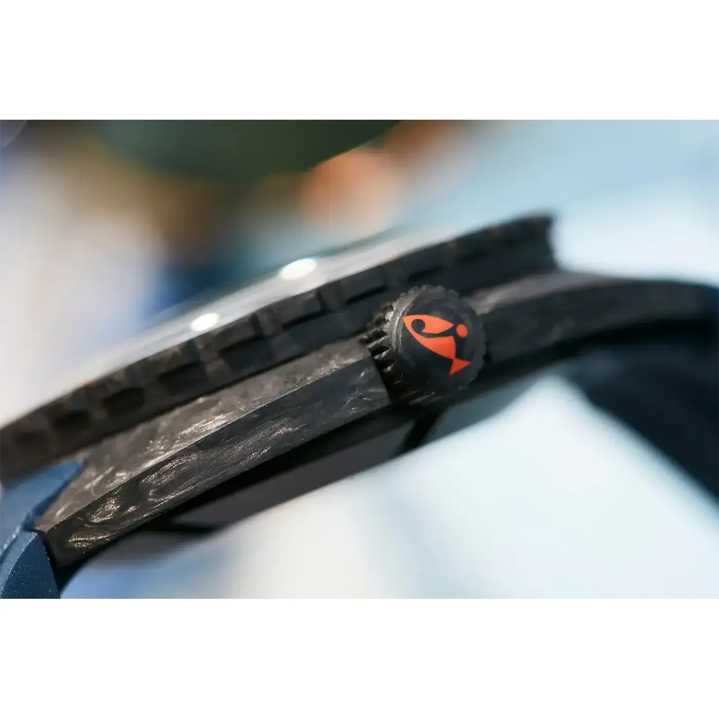 Doxa SUB 300 CARBON to ultralekki, profesjonalny zegarek do nurkowania na nadgarstek, oferujący fascynującą fuzję najnowocześniejszej technologii oraz estetyki przeniesionej z legendarnego i przełomowego modelu SUB 300. Wszystkie czasomierze z kolekcji Doxy SUB 300 CARBON wyróżniają się obudową z kutego włókna węglowego, tytanową komorą zapewniającą odporność na nacisk, a także bardzo funkcjonalną tarczą i dopasowanym kolorystycznie paskiem z gumy FKM.