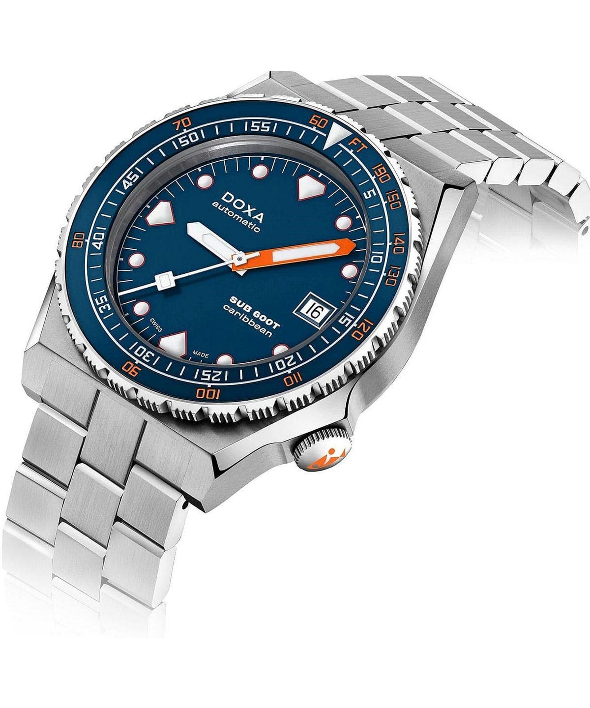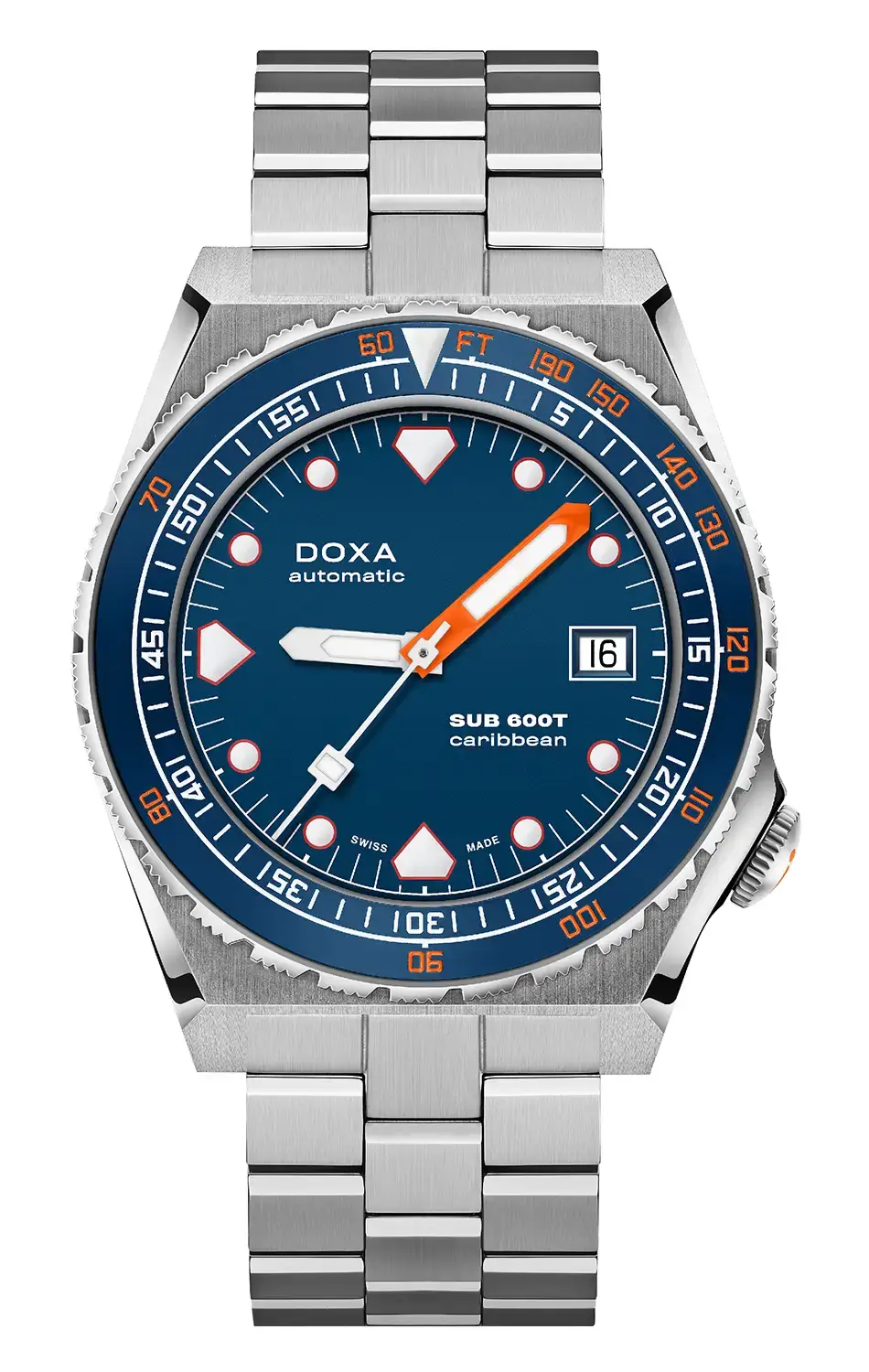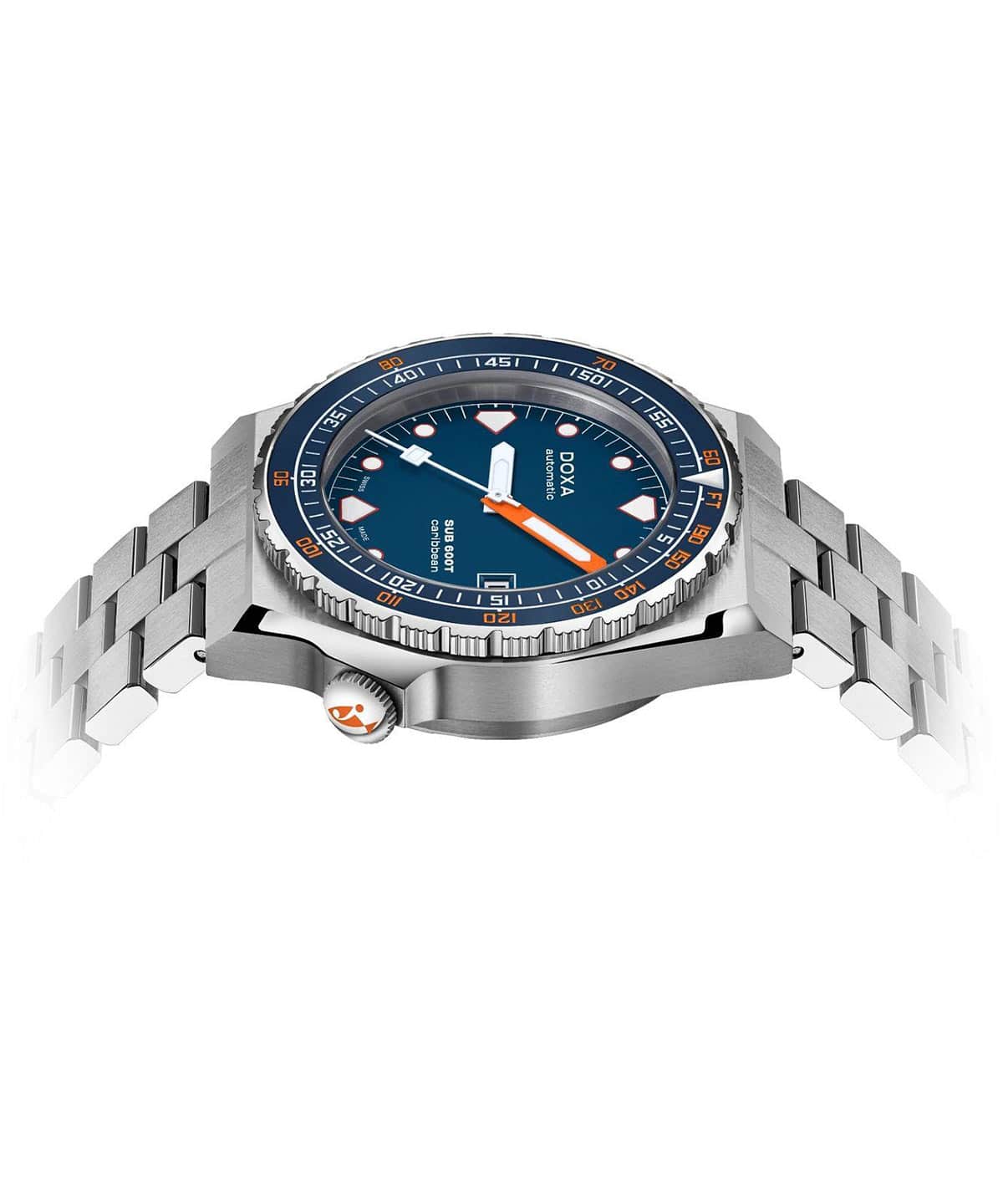 DOXA SUB 600T odradza się w 2021 roku — ponad 40 lat później i czyni coś więcej niż tylko powrócenie do rozdziału napisanego dużo wcześniej. Marka oddaje hołd kultowemu modelowi SUB 600T z nową historią, która tworzy się właśnie teraz. Po wielkim sukcesie limitowanej edycji zegarka nurkowego z tytanu Doxa SUB 600T Pacific Blue DOXA przedstawia SUB 600T w nielimitowanej wersji, aby wzbogacić linię profesjonalnych zegarków do nurkowania DOXA SUB. Odrodzony zegarek diver Doxa SUB 600T Caribbean to model dostępny w wytrzymałej obudowie ze stali nierdzewnej 316L z niebieską ceramiczną ramką, w środku której znajduje się czytelna, ciemnoniebieska tarcza.