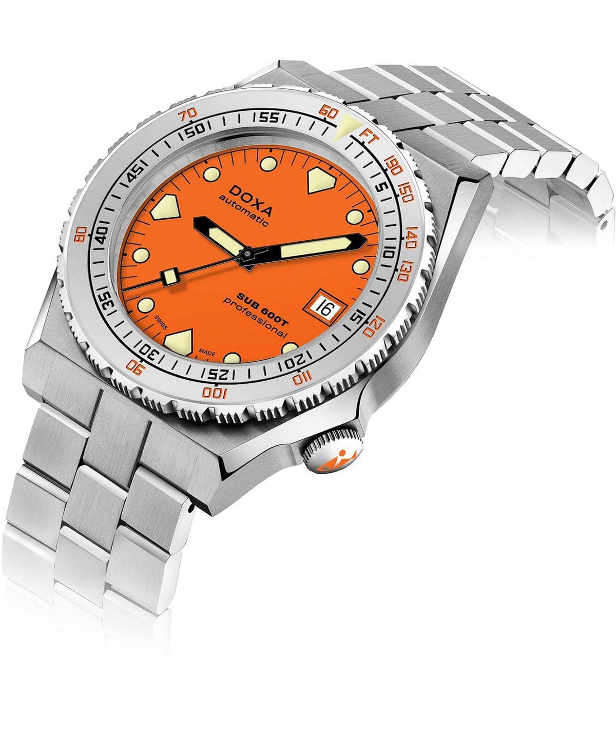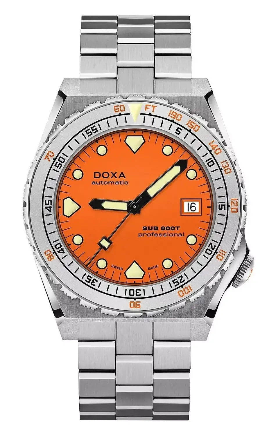 DOXA SUB 600T odradza się w 2021 roku — ponad 40 lat później i czyni coś więcej niż tylko powrócenie do rozdziału napisanego dużo wcześniej. Marka oddaje hołd kultowemu modelowi SUB 600T z nową historią, która tworzy się właśnie teraz. Po wielkim sukcesie limitowanej edycji zegarka nurkowego z tytanu Doxa SUB 600T Pacific Blue DOXA przedstawia SUB 600T w nielimitowanej wersji, aby wzbogacić linię profesjonalnych zegarków do nurkowania DOXA SUB. Odrodzony zegarek diver Doxa SUB 600T Professional to model dostępny w wytrzymałej obudowie ze stali nierdzewnej 316L i ze stalową ramką o piaskowanym wykończeniu, w środku której znajduje się najbardziej czytelna pod wodą, pomarańczowa tarcza.