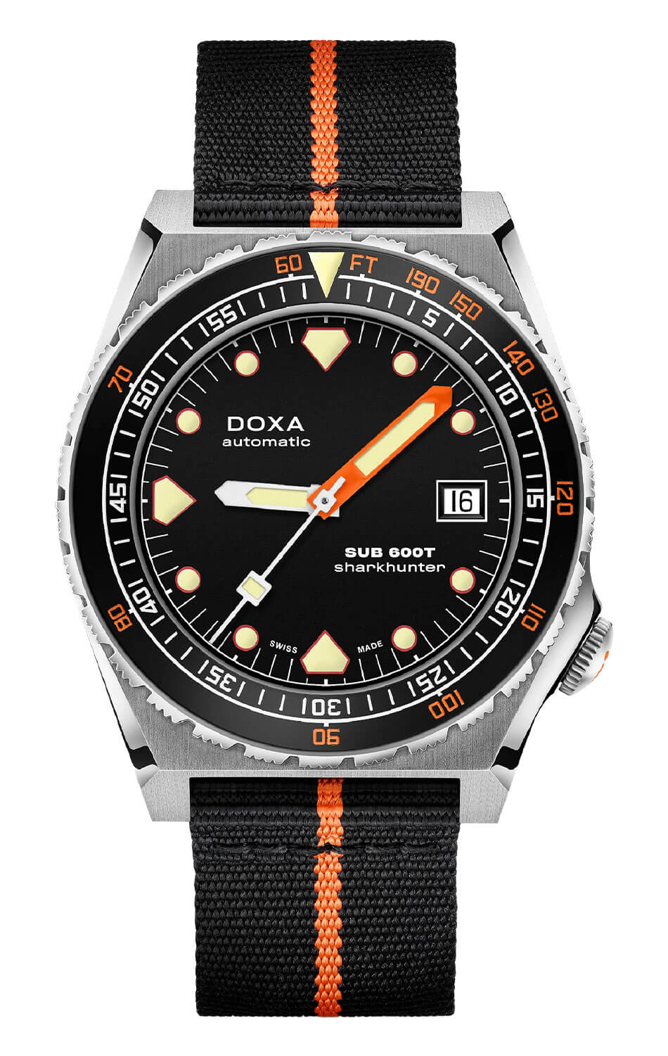 DOXA SUB 600T odradza się w 2021 roku — ponad 40 lat później i czyni coś więcej niż tylko powrócenie do rozdziału napisanego dużo wcześniej. Marka oddaje hołd kultowemu modelowi SUB 600T z nową historią, która tworzy się właśnie teraz. Po wielkim sukcesie limitowanej edycji zegarka nurkowego z tytanu Doxa SUB 600T Pacific Blue DOXA przedstawia SUB 600T w nielimitowanej wersji, aby wzbogacić linię profesjonalnych zegarków do nurkowania DOXA SUB. Odrodzony zegarek diver Doxa SUB 600T Sharkhunter 861.10.101.34-N to model dostępny w wytrzymałej obudowie ze stali nierdzewnej 316L, z czarnym paskiem z wysokiej jakości materiału NATO oraz ze stalową ramką o piaskowanym wykończeniu, w środku której znajduje się czytelna, czarna tarcza.