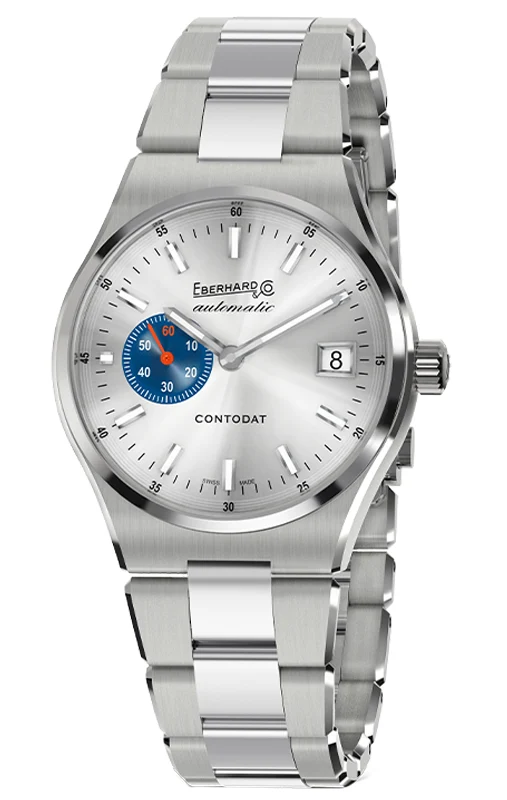 Eberhard Contodat Automatic 41156.03 CA2C srebrna tarcza, niebieski sekundnik i stalowa bransoleta. Klasyka i precyzja w nowoczesnej formie.