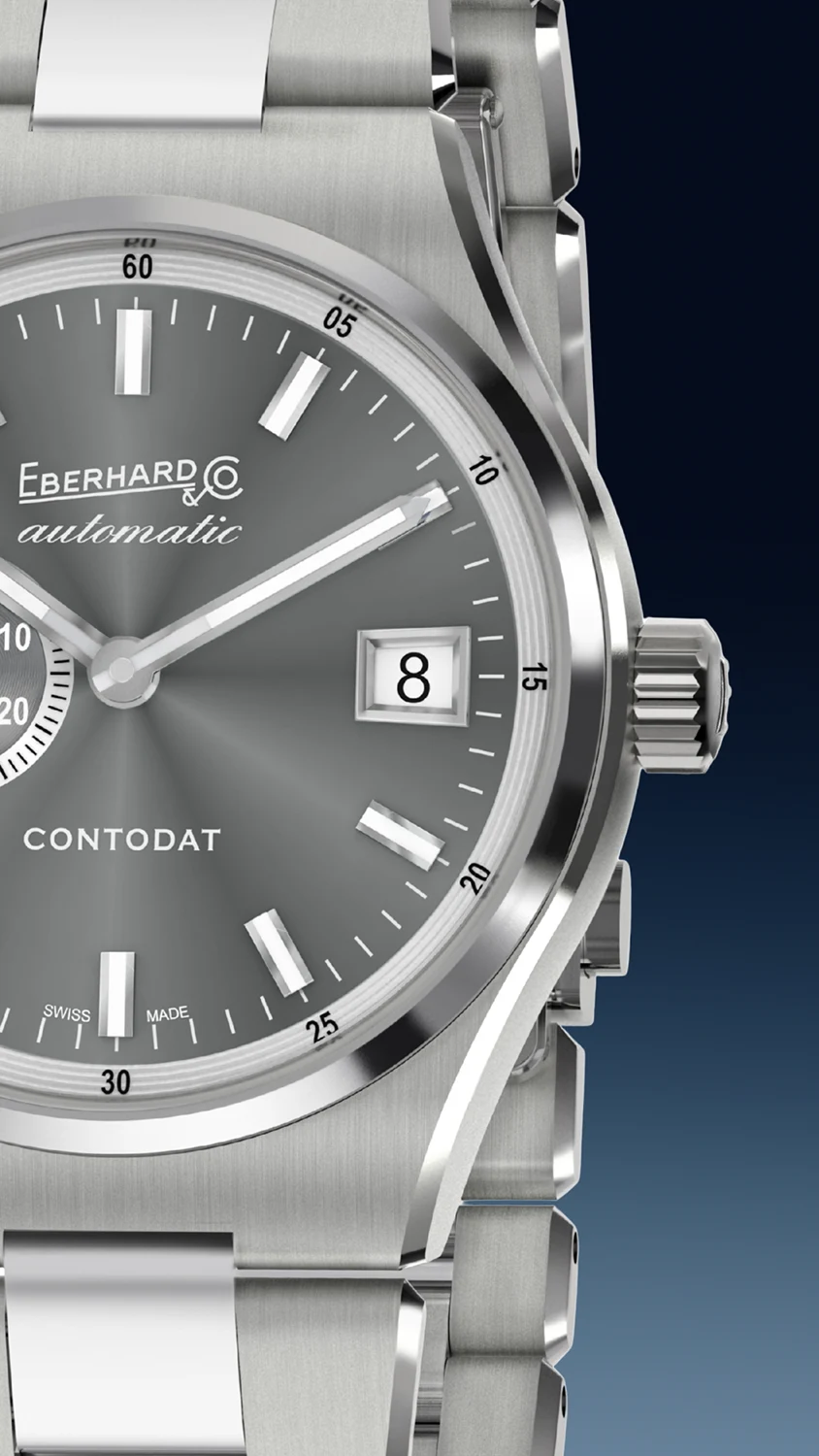Eberhard Contodat Automatic 41156.04 CA2C to zegarek, który definiuje współczesną elegancję w czystej, technicznej formie. Łączy w sobie ducha lat 70. z nowoczesnym charakterem, stworzony dla mężczyzn, którzy poszukują precyzji, stylu i indywidualności. W tej wersji grafitowa tarcza o wykończeniu soleil nadaje czasomierzowi wyjątkowy, nowoczesny ton, emanujący siłą i spokojem zarazem.