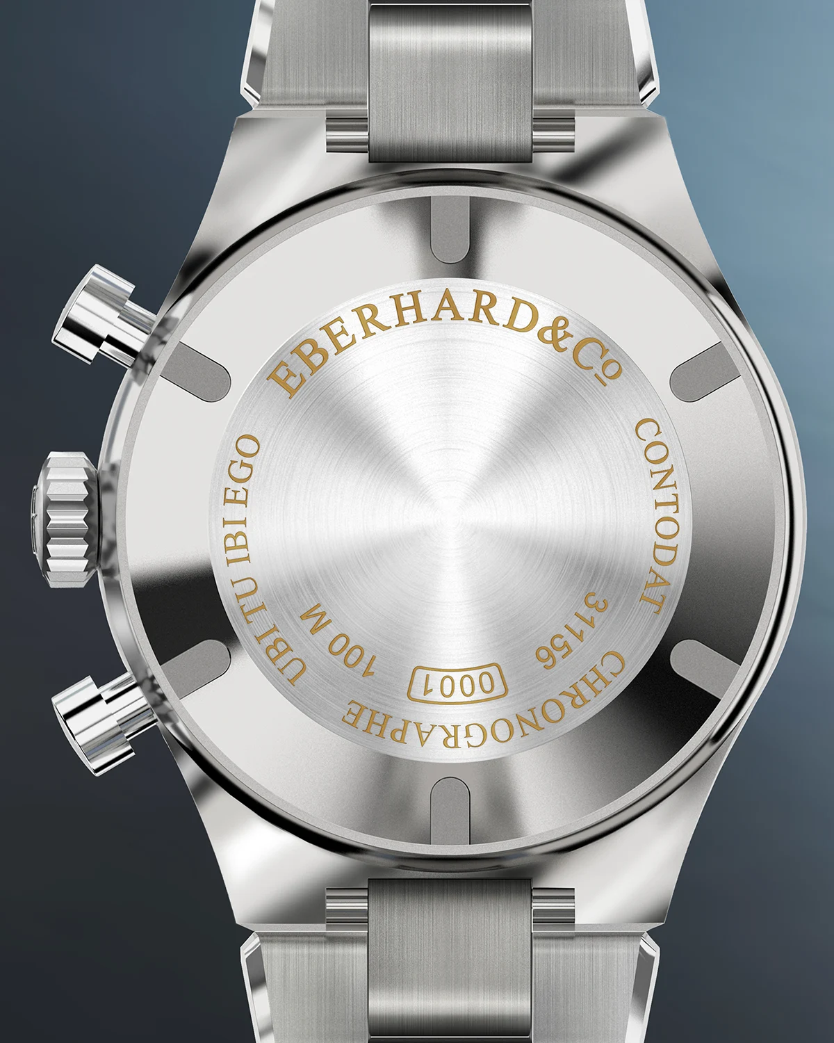 Jednym z wyjątkowych elementów tego modelu jest jego dekiel. W centralnej części znajduje się złoty grawer z napisem w języku łacińskim: “UBI TU IBI EGO” – „Gdziekolwiek będziesz, tam i ja będę”. To nie tylko motto, ale obietnica trwałości i więzi między właścicielem a jego zegarkiem – symbol wartości, które przetrwały dekady i stanowią fundament filozofii Eberhard & Co. Każdy egzemplarz jest dzięki temu czymś więcej niż tylko instrumentem pomiaru czasu – to osobisty towarzysz i dziedzictwo przekazywane z pokolenia na pokolenie.
