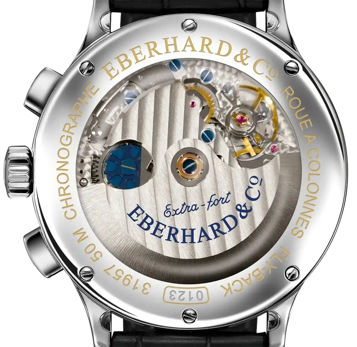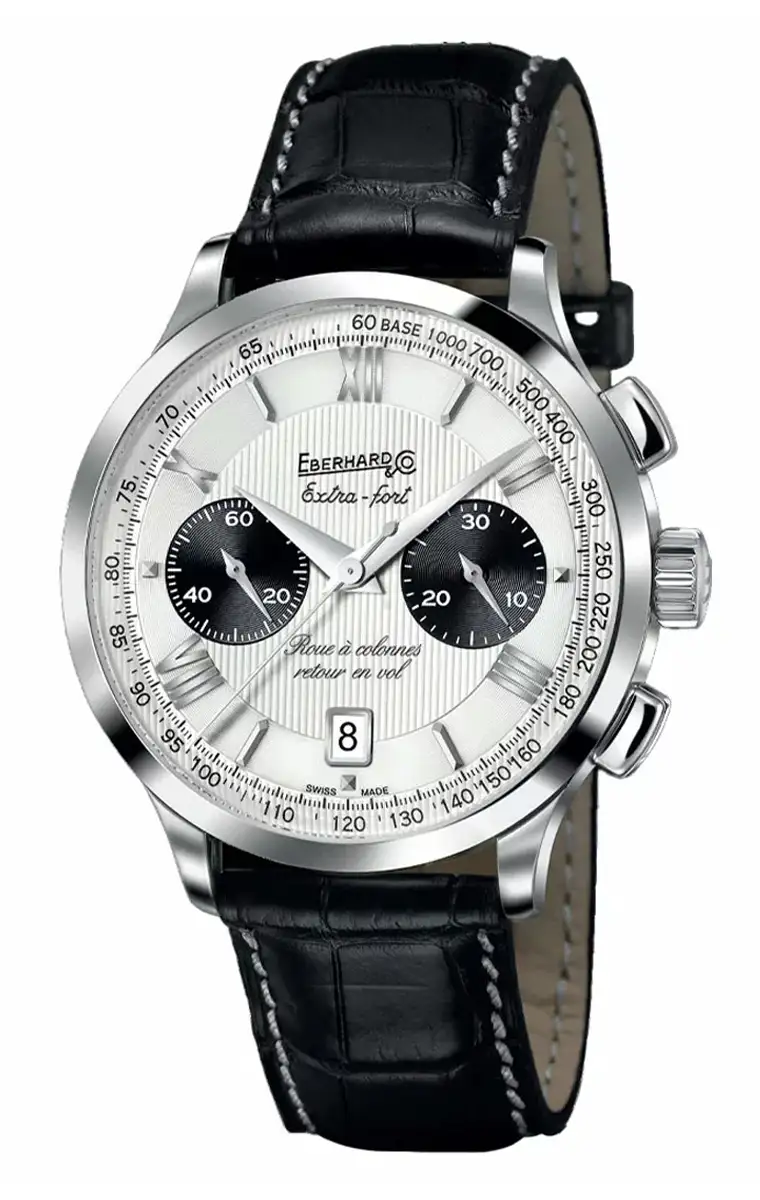 Eberhard Extra-Fort Roue à Colonnes Retour en Vol to zegarek dla osób, które oczekują czegoś więcej niż tylko odmierzania czasu. To świadomy wybór dla miłośników klasycznych chronografów, którzy chcą nosić na nadgarstku dopracowany technicznie, elegancki i ponadczasowy symbol szwajcarskiego zegarmistrzostwa.