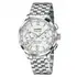 Tarcza tego męskiego zegarka zachwyca starannym wykończeniem typu frappé oraz delikatnie azurowaną strefą okrągłą, która nadaje całości głębi i elegancji. Kontrastowe liczniki chronografu zostały czytelnie rozmieszczone, a subtelna skala tachymetryczna na obrzeżu tarczy podkreśla sportowo-klasyczny charakter zegarka. Każdy element kompozycji podporządkowano harmonii i czytelności, bez wizualnego przesytu.