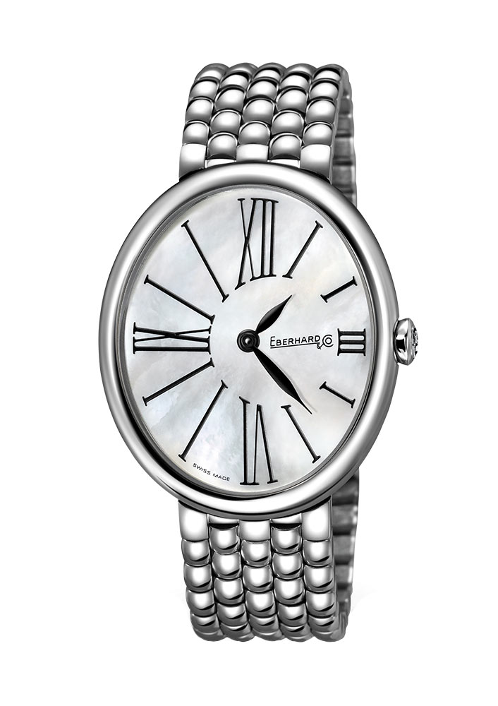 Damski zegarek Eberhard Gilda 610081 to owalna koperta w rozmiarze 32 × 38 mm. Na rewersie koperty umieszczony został dekiel z ozdobnym, kwiatowym wzorem. Jest on przykręcany czterema śrubami. Intencją producenta tego luksusowego zegarka było zaoferowanie niezwykłego eleganckiego produktu na każdy kobiecy nadgarstek. Eberhard zestawił swój czasomierz z solidną bransoletą stalową CHÉRI® z zapięciem motylkowym. Bransoletę tworzą małe koraliki ze stali, co dodaje uroku i charakteru całemu projektowi.