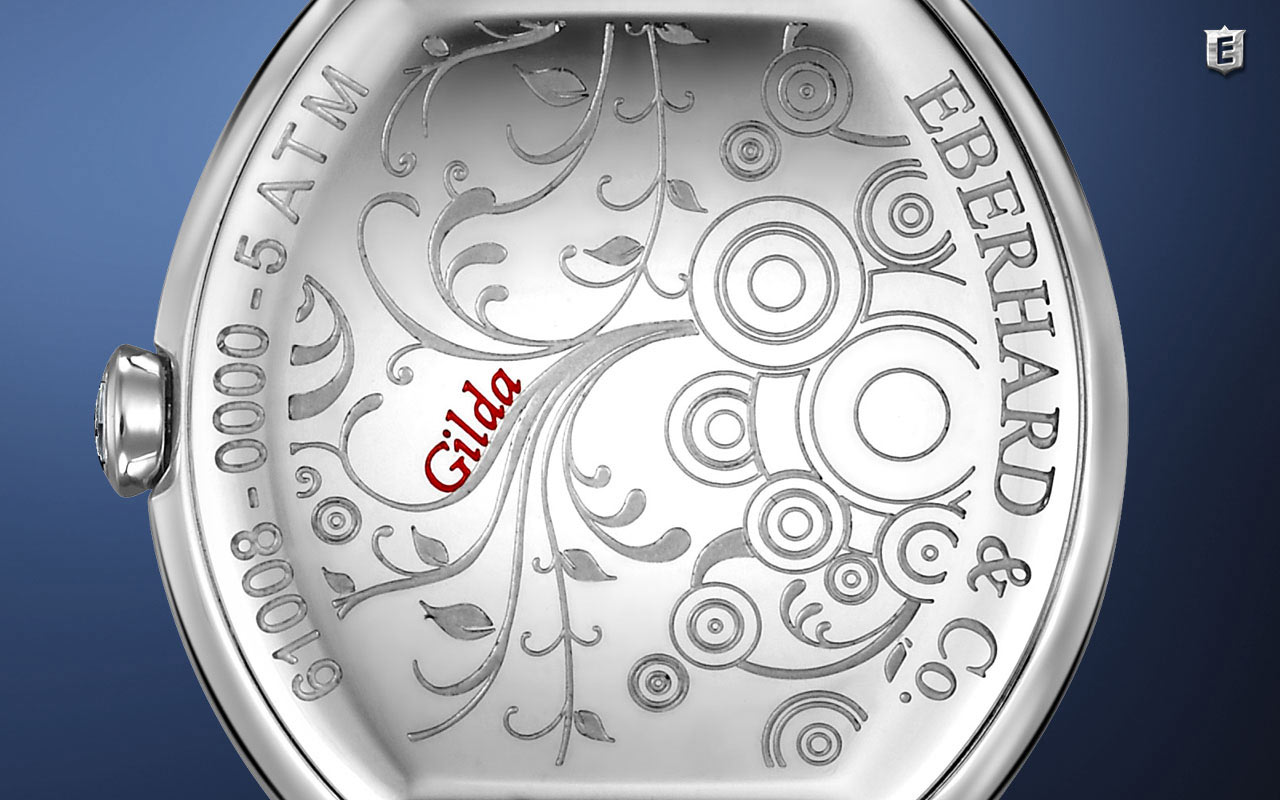 Damski zegarek Eberhard Gilda 610083 to owalna koperta w rozmiarze 32 × 38 mm. Na rewersie koperty umieszczony został dekiel z ozdobnym, kwiatowym wzorem. Jest on przykręcany czterema śrubami. Intencją producenta tego luksusowego zegarka było zaoferowanie niezwykłego eleganckiego produktu na każdy kobiecy nadgarstek. Eberhard zestawił swój czasomierz z solidną bransoletą stalową CHÉRI® z zapięciem motylkowym. Bransoletę tworzą małe koraliki ze stali, co dodaje uroku i charakteru całemu projektowi.