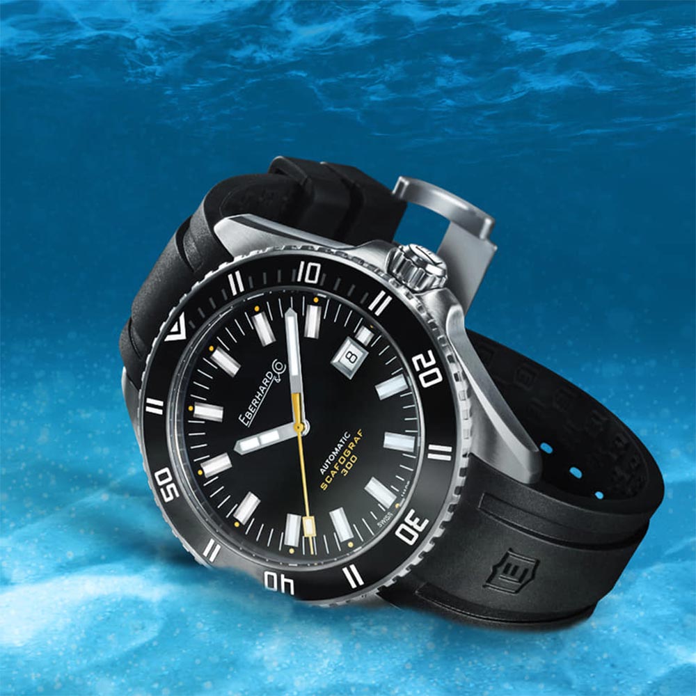 Eberhard & Co. prezentuje nową edycję modelu Scafograf, zinterpretowaną we współczesny sposób. W 1950 roku szwajcarscy zegarmistrze przeprowadzali szereg badań technicznych i innowacji, które pozwalałyby na stworzenie wytrzymałego zegarka nurkowego zdolnego do eksploracji podwodnych głębin. Były to lata, w których opublikowano jedno z największych dzieł Hemingwaya – „Stary człowiek i morze” – który zajmował się takimi tematami jako odwaga i wytrwałość człowieka w obliczu natury. Były to lata, w których firma Eberhard & Co. zaprezentowała swój Scafograf. Kolekcja przeznaczona do noszenia przez żądnych przygód i sportowców z dynamicznym duchem. Wzbogacana przez lata kolekcja składał się z modeli stalowych, które były wodoszczelne do 100, 200, 300, 400, 750 lub 1000 metrów, z obrotową ramką lub bez oraz ze świecącymi w ciemności indeksami.