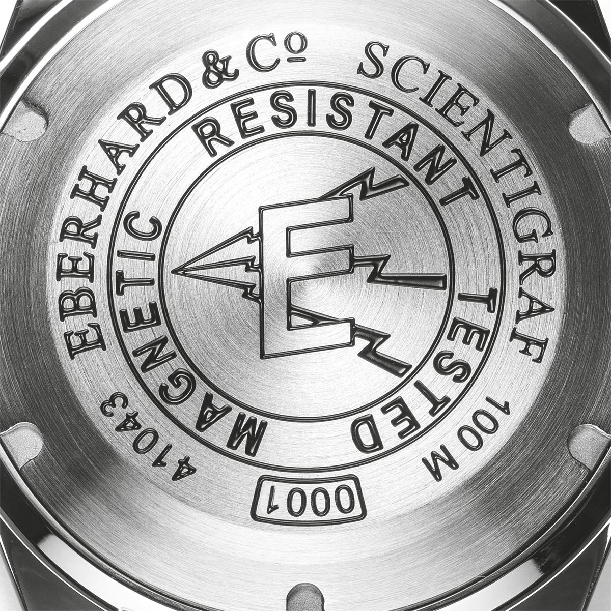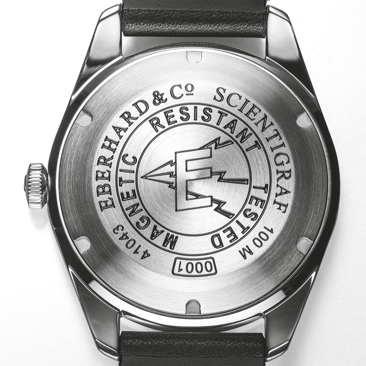 Na czym polegała technologia, która w latach 60. odniosła tak wielki sukces? Została zbudowana na prostej zasadzie, której włączenie do życia codziennego nie było już tak łatwe. Klatka Faradaya jest to konstrukcja złożona z miękkiego żelaza, która jest swego rodzaju tarczą dla ruchów zegarka. Jej zadaniem jest absorpcja fal elektromagnetycznych, aby uniemożliwiać dotarcie im do mechanizmów. Dziś pola magnetyczne stanowią dużo większe zagrożenie dla czasomierzy niż niegdyś, a to przez większą ilość urządzeń, takich jak telefony komórkowe, komputery, głośniki itp. Eberhard Scientigraf to nowa, "antymagnetyczna" edycja historycznego modelu, bazująca na cechach pioniera, a zarazem dostarczająca dóbr płynących z nowoczesnej technologii i wzornictwa. Zegarek męski o modelu 41043.01 CP posiada kopertę o średnicy 41 mm wodoodporną do 10 bar. Wykonana jest ona ze stali o zarówno błyszczącym, jak i satynowym wykończeniu oraz zawieszona na pasku skórzanym z ozdobną aplikacją z cordury. Dekiel jest zakręcany, a ponadto spersonalizowany epokowym logo z napisem, odnoszącym się do testów pomyślnie przeprowadzonych w specjalistycznym centrum w La Chaux-de-Fonds, które udowadniają zgodność z normami ISO 764 2020. Ruch czasomierza wywołuje samonakręcający się mechanizm mechaniczny. Tarcza w kolorze czarnego matu zawiera oryginalną skalę godzin w formie cyfr arabskich pokrytych białą luminescencją oraz trójkątów wypełnionych pomarańczową luminescencją. Całość znajduje się pod wypukłym, antyrefleksyjnym i wysoce odpornym na zarysowania szkłem szafirowym.