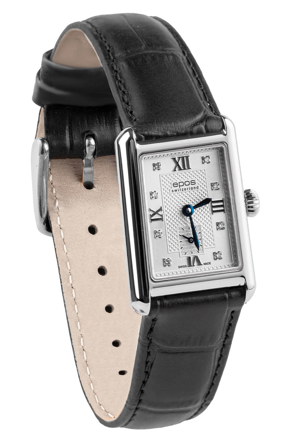 Zegarek damski z diamentami Epos Ladies 8002.702.20.80.15 to propozycja dla kobiet, które łączą klasyczną elegancję z wyrafinowanym gustem. Jego prostokątna forma przywodzi na myśl styl art déco, a biżuteryjny charakter sprawia, że doskonale komponuje się zarówno z biznesowym garniturem, jak i z wieczorową suknią. To model dla kobiet, które doceniają detale, precyzję i subtelny blask szwajcarskiego rzemiosła.