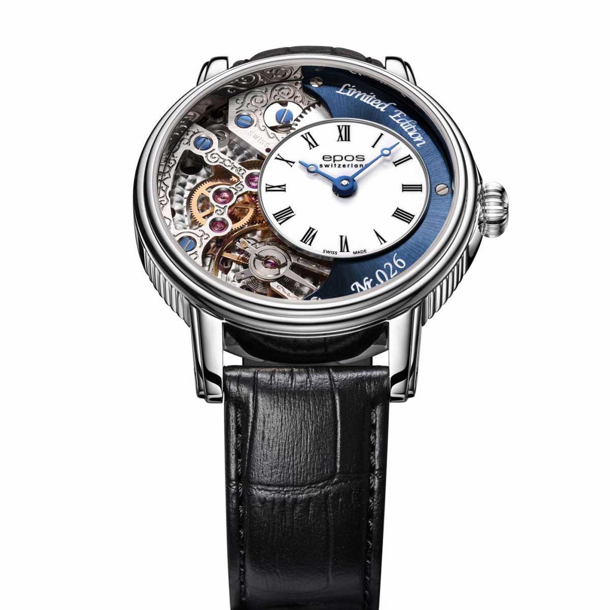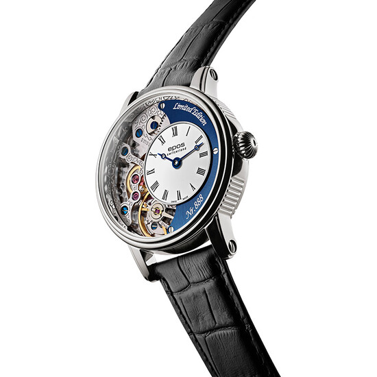 Inżynierowie Epos znaleźli sposób, aby stworzyć o poziom wyższy, imponujący zegarek Verso. Edycja limitowana Epos 3435 Verso 2 do 888 sztuk na cały świat, nadal pokazuje pięknie wykończony mechanizm Unitas 6497, ale wyposażony jest dodatkowo w wyrafinowany trzyczęściowy cyferblat ze stali nierdzewnej. Elegancko zaprojektowana tarcza składa się z trzech części co skupia na sobie subtelnie wzrok. Mimo, że zegarek wygląda bardzo klasycznie to zawiera symbiozę nowoczesnej technologii i tradycyjnego zegarmistrzostwa. Biały cyferblat z rzymskimi indeksami idealnie kontrastuje z niebieską częścią na której znajduje się numer limitacji. Spektakularna tarcza z pewnością jest głównym elementem tego czasomierza, ale to mechanizm spełnia rolę najpiękniejszej części zegarka EPOS 3435 Verso II.