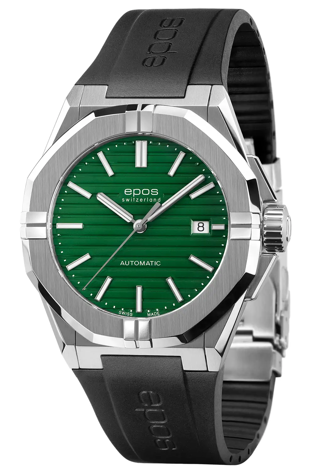Epos Sport 3506.132.20.13.55 to męski zegarek automatyczny na gumowym pasku, z zieloną tarczą, szkłem szafirowym i wodoszczelnością 100 metrów. Mechanizm ETA 2824 zapewnia precyzję.